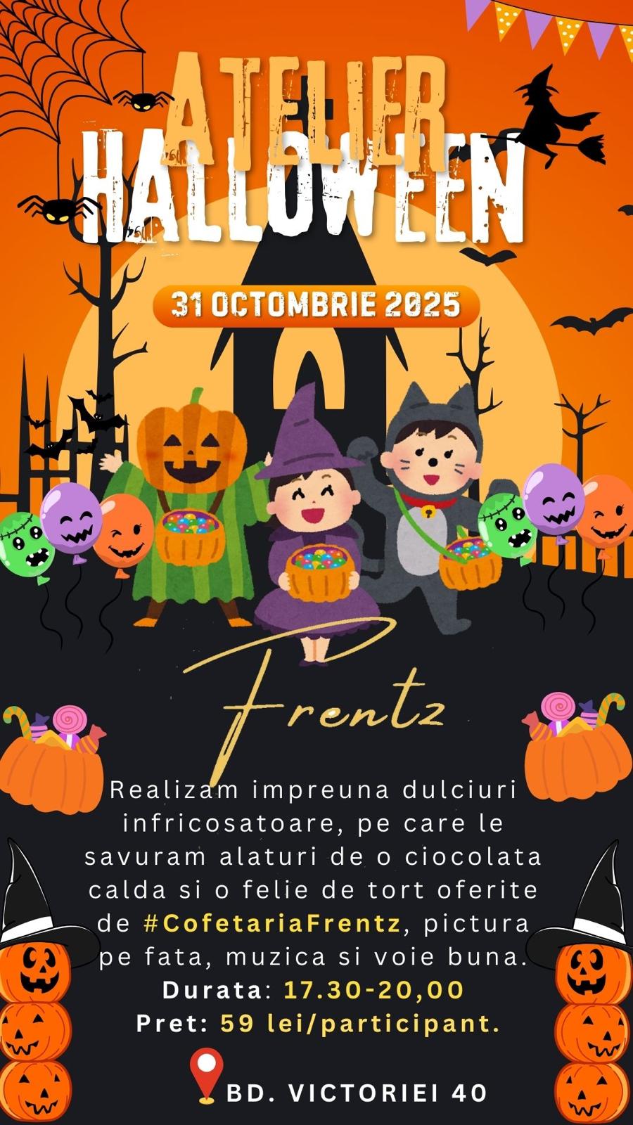Mămicile sunt așteptate pe 31 octombrie, de la ora 17:30, la ediția cu numărul 3 a atelierului special Frentz, unde vor crea dulciuri de groază, iar cei mici se vor bucura de ciocolată caldă și o felie de tort delicios.
