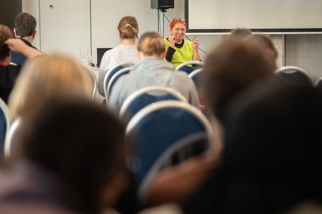 Programul de pregătire pentru filmele documentare, Industry 2025, a avut-o invitată, marți, pe producătoarea Oana Giurgiu, care le-a vorbit tinerilor despre facilitățile de producție și coproducție de filme documentare în România. În sală au fost mulți invitați veniți pentru programul DocStudent HUB, alături de mentorii lor și nu numai, din Cehia, Slovacia, Turcia, Bulgaria, Georgia, Lituania sau Germania.