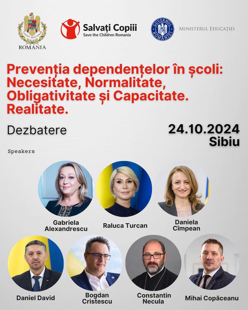 Ministrul Educației, Daniel David, va fi prezent vineri la Sibiu, în cadrul unei dezbateri publice dedicate prevenirii dependențelor în rândul copiilor și adolescenților, intitulată: „Prevenția dependențelor în școli – necesitate, normalitate, obligativitate și capacitate”.
