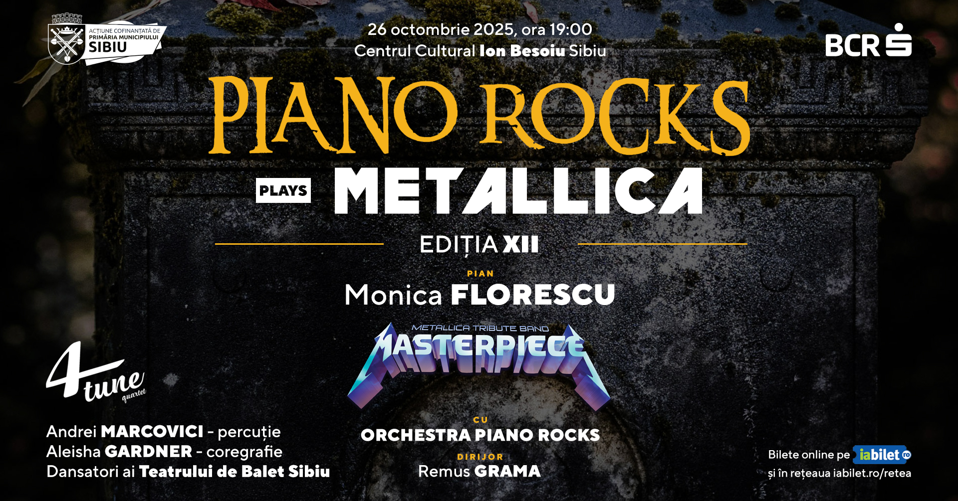 Ediția a XII-a a proiectului cultural Piano Rocks aduce pe scena sibiană un concept spectaculos, dedicat uneia dintre cele mai influente formații din istoria muzicii rock – Metallica. Evenimentul va avea loc în 26 octombrie a Centrul Cultural ”Ion Besoiu” din Sibiu și promite o experiență intensă și emoționantă, în care puterea rockului se îmbină cu rafinamentul muzicii clasice.