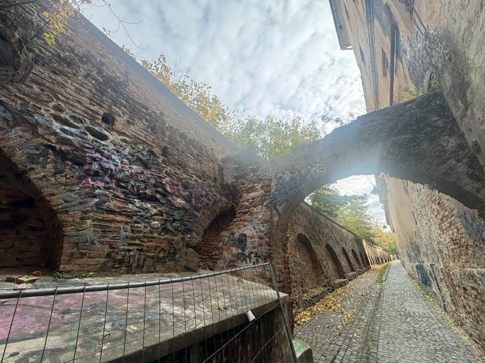 Zidul de pe strada Manejului datează din secolul al XIV-lea, potrivit informațiilor publicate prin intermediul patrimoniu.sibiu.ro, fiind restaurat la forma inițială în 1976. Iar cele două arcade acoperite abundent acum de mâzgăleli susțin „o galerie de trecere spre curtea cândva numită a călugărilor”.