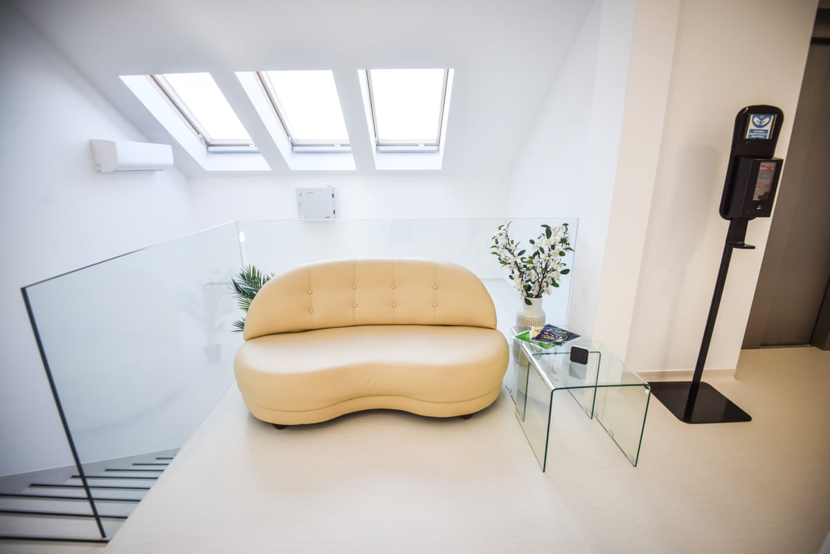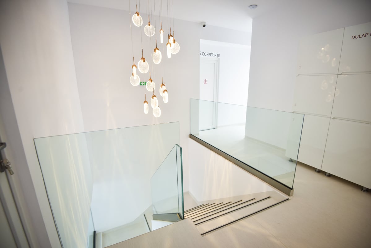 Spațiul identificat – unul care are curte cu parcare proprie – a trecut printr-un amplu șantier în urma căruia a fost transformat total, de la amenajarea unui lift, la spații prietenoase și cabinete cu multă lumină naturală.
