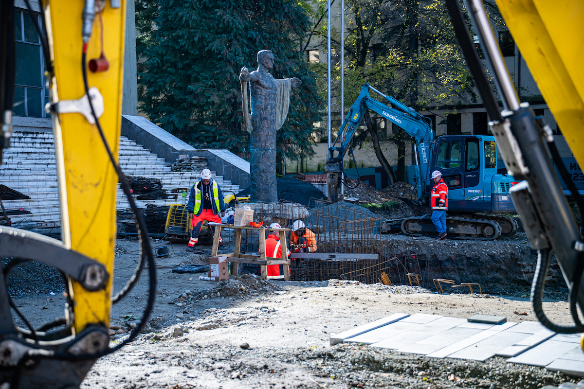 Echipa de muncitori ai companiei care lucrează la amenajarea piațetei urbane din fața Cercului miitar din Sibiu au îndepărtat pavajul din zona unde va fi amplasată fântâna arteziană și au realizat săpăturile pentru fundațiile acesteia, anunță Primăria într-o informare privind stadiul lucrărilor.
