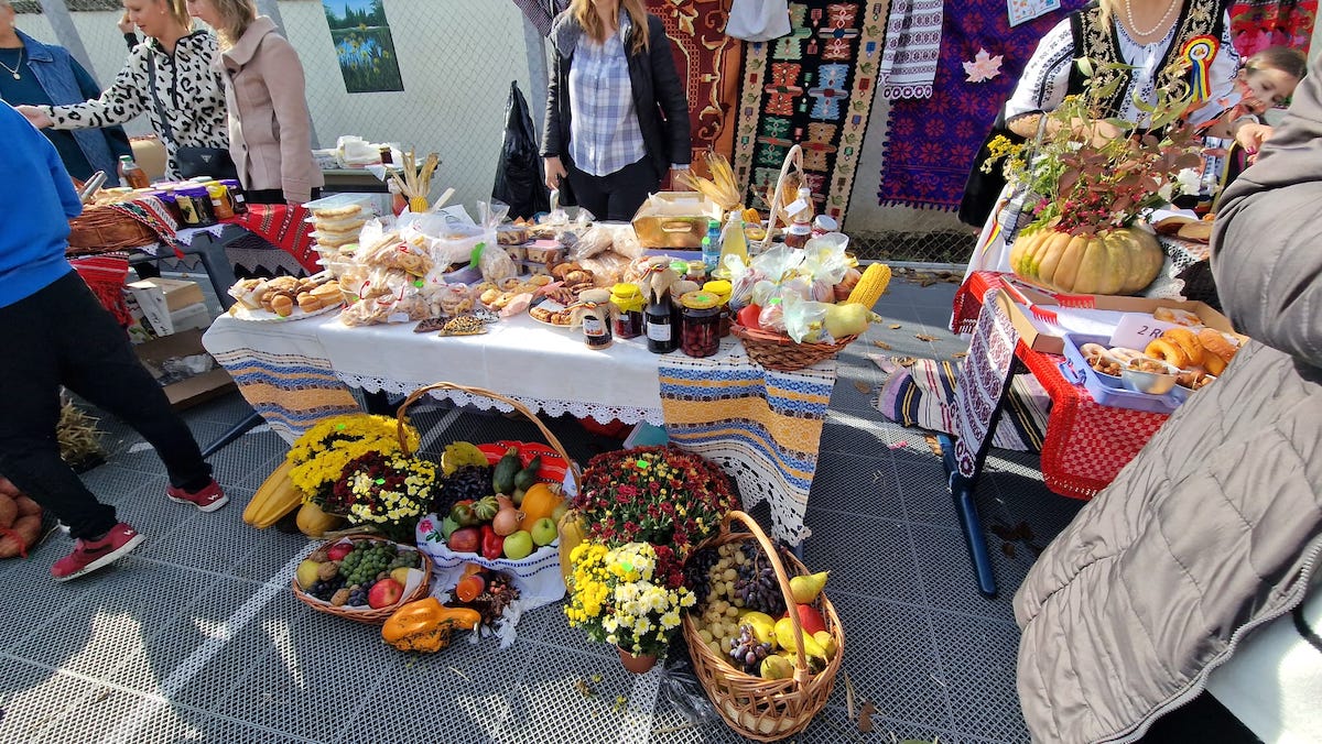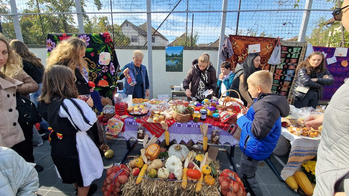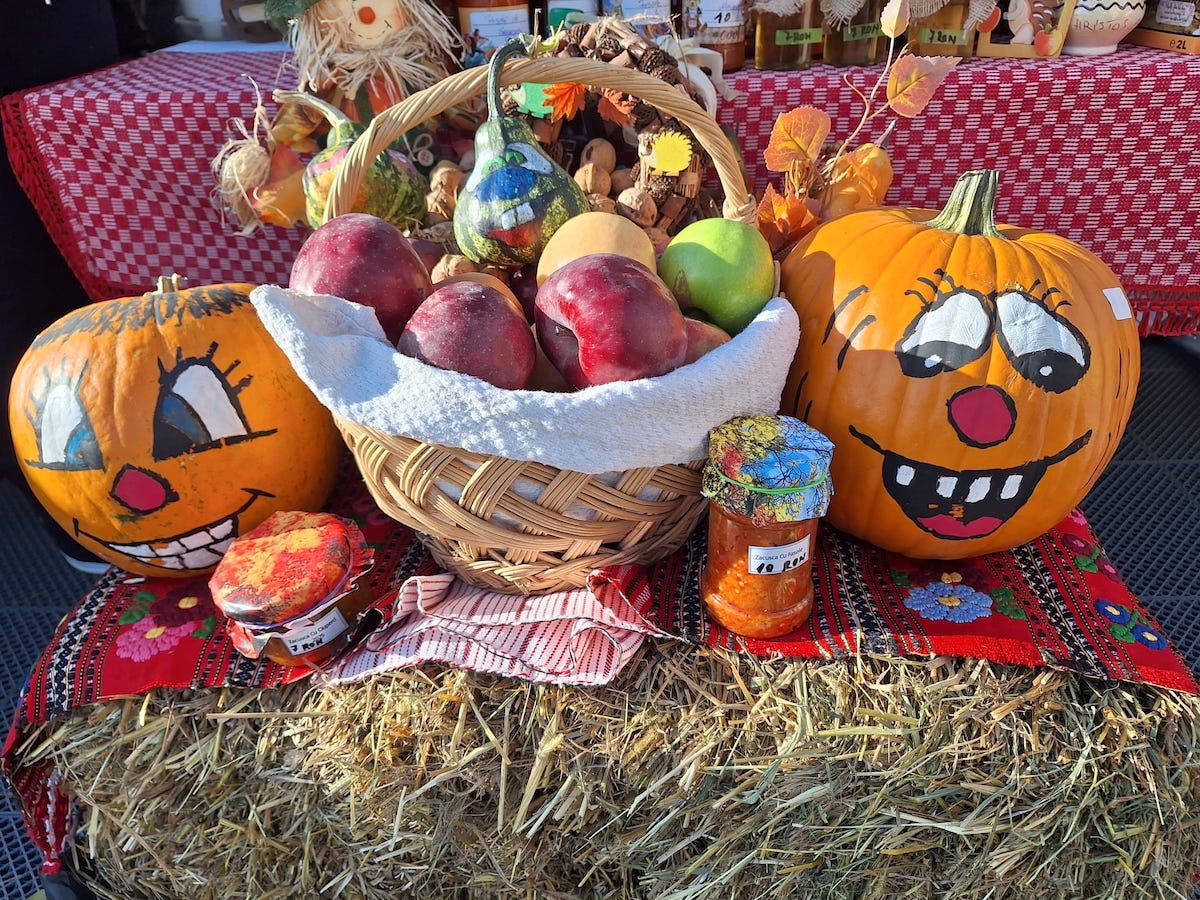 Vizitatorii târgului au putut achiziționa dulciuri, produse sărate, aranjamente și obiecte specifice toamnei, admirând decorul realizat cu baloți de paie, dovleci colorați și elemente tradiționale.