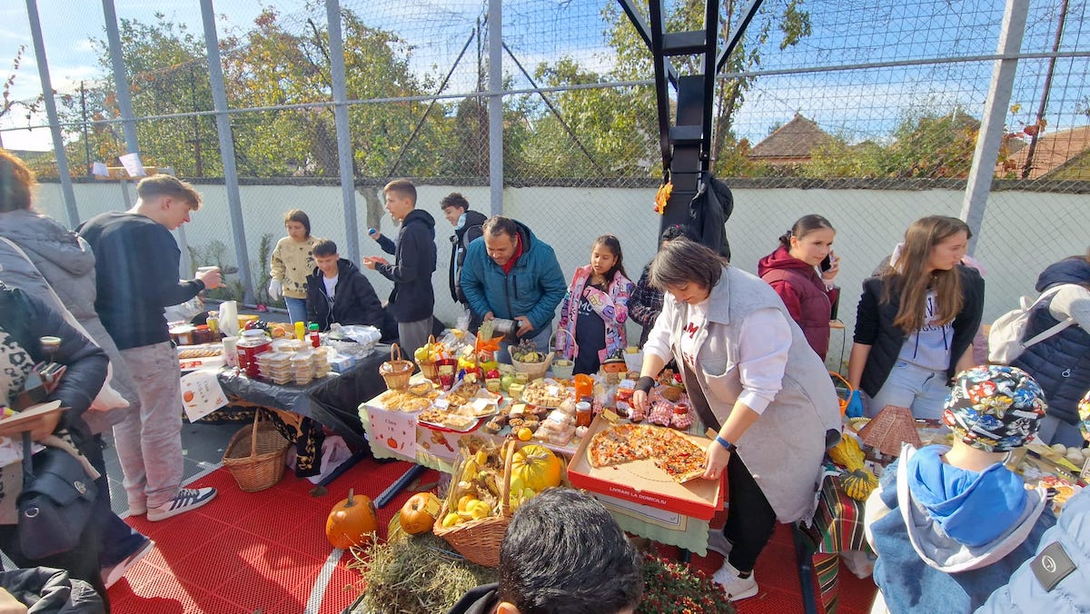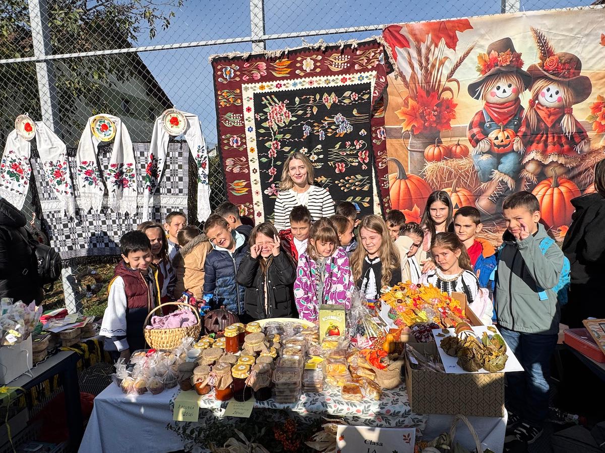 Săptămâna trecută curtea școlii a fost animată de standuri colorate și activități tematice dedicate toamnei, anotimpul bogăției. Ziua a început cu un moment artistic susținut de elevi din cercul de chitară și tineri interpreți de muzică populară.