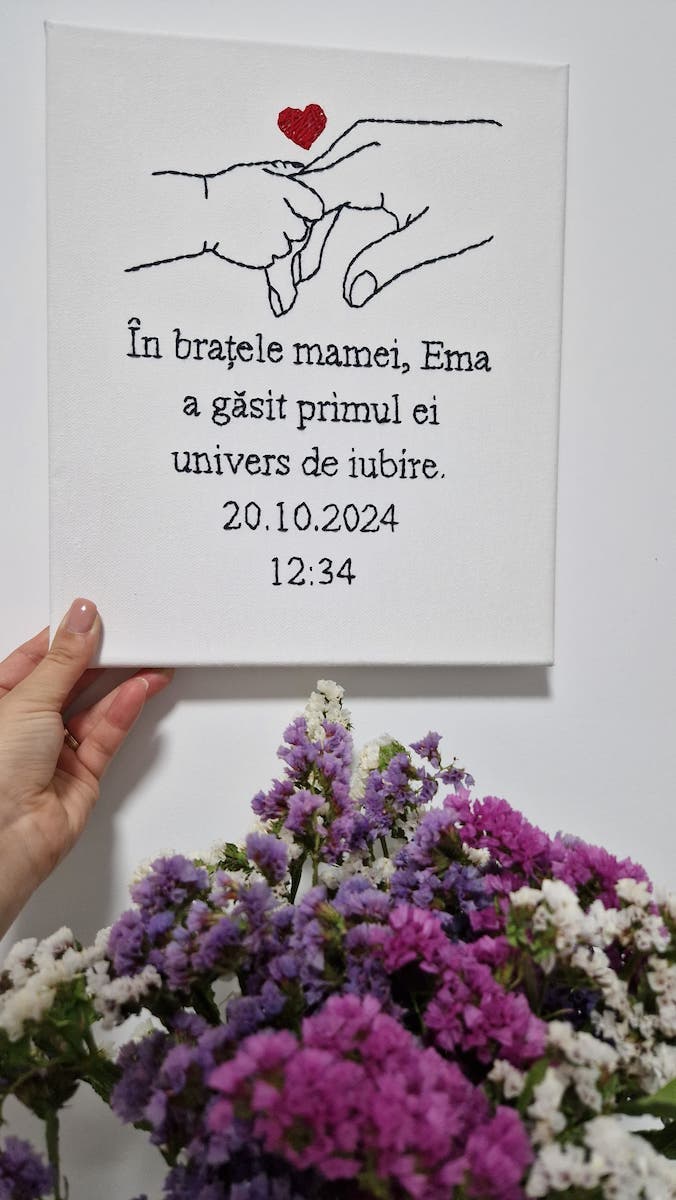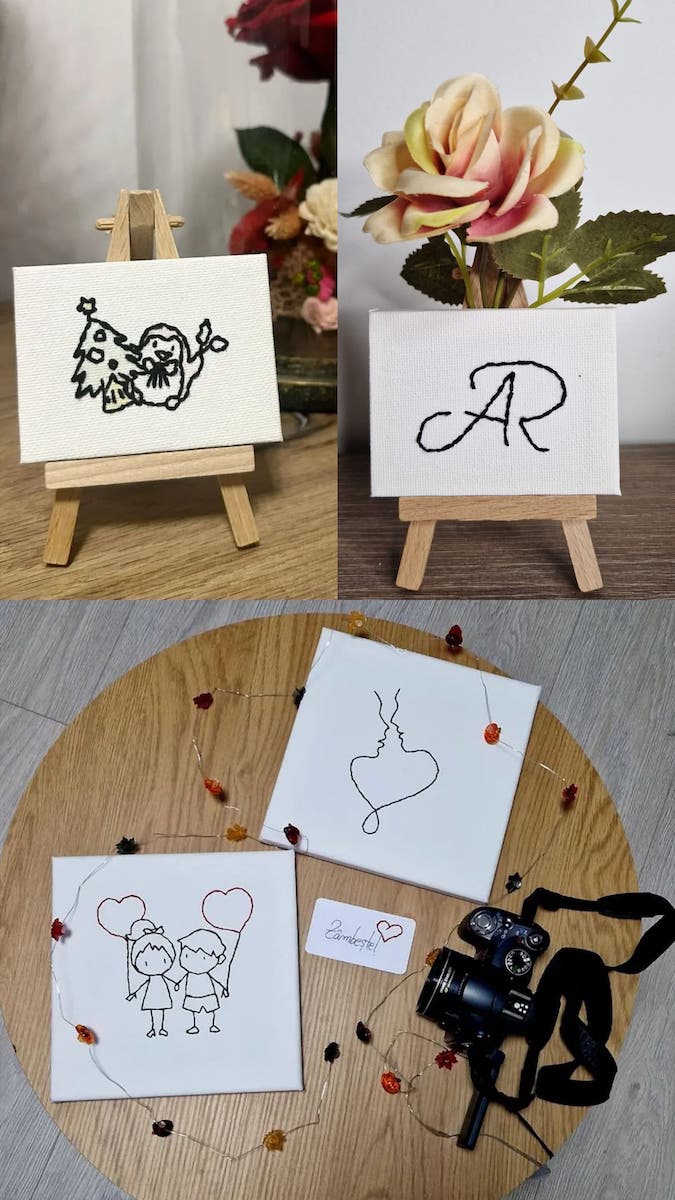 Alina creează, în principal, tablouri cusute manual, semnătura ei artistică, dar face și alte obiecte handmade personalizate – de la accesorii și decorațiuni până la piese unicat cu mesaje.