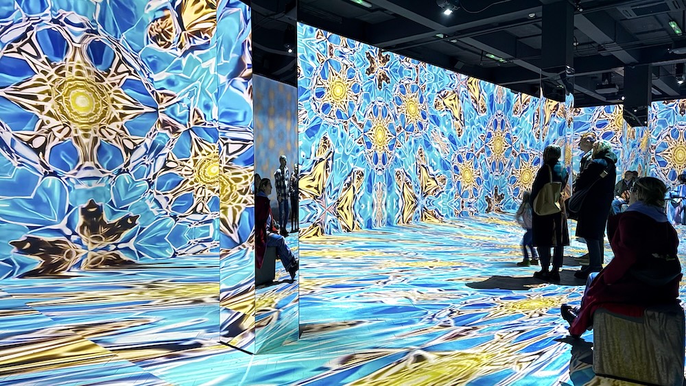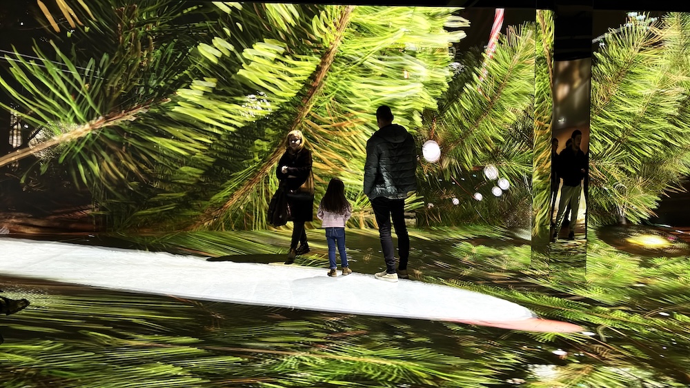 Experiența începe cu o hartă a muzeului, primul etaj fiind dedicat unui spațiu imersiv în care rulează în buclă trei lucrări artistice distincte. Toate poartă semnăturile unor artiști consacrați pe scena internațională, asemenea artei clasice, creațiile lor având rolul de a desprinde privitorul din viața de zi cu zi; de a te face să-ți pui întrebări, de a te face să visezi, să gândești... Spre exemplu, poți vedea cum natura și tehnologia se îmbină sub picioarele tale.