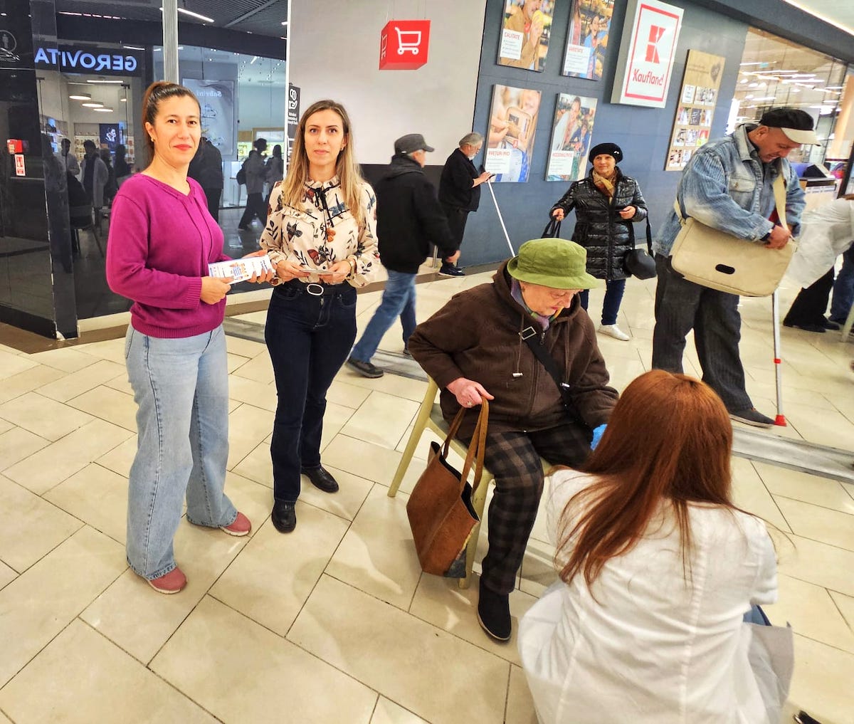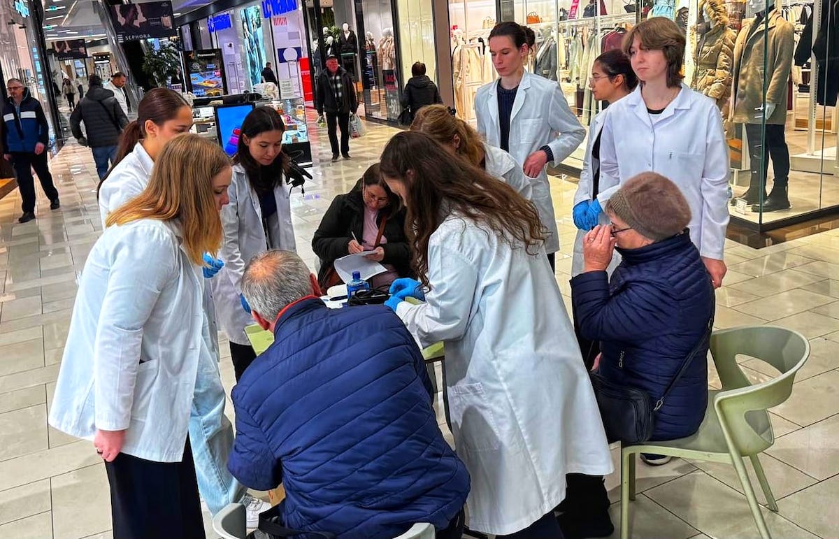 Mai bine de 30 de tineri, membri ai Societății Studenților Mediciniști „Hermannstadt” Sibiu, coordonați de Ștefania Solomon, împreună cu cinci angajați ai Direcției de Sănătate Publică Sibiu, sub coordonarea dr. Simona Berariu, desfășoară astăzi determinări și măsurători gratuite de glicemie și tensiune arterială. Acțiunea are loc în mall-ul din Sibiu, de pe strada Lector, în zona hypermarket-ului.