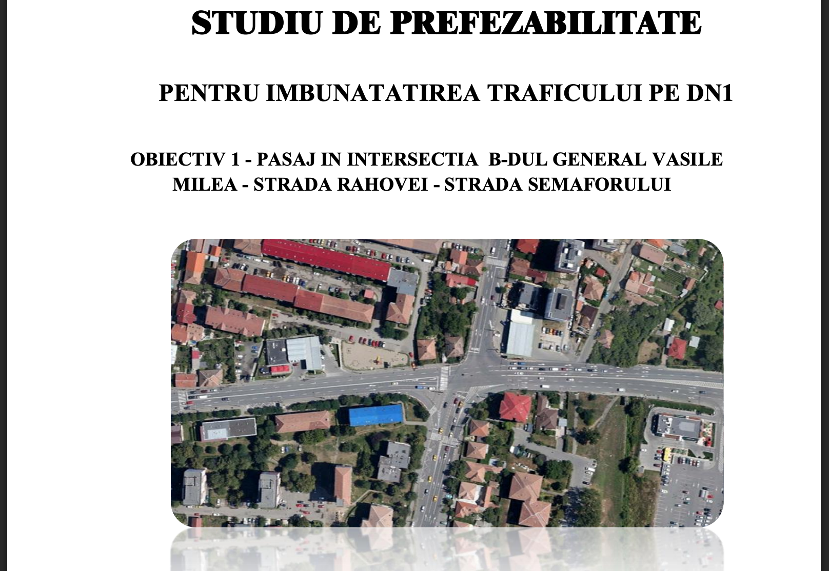 Pasajul subteran între Bulevardul General Vasile Milea și DN1 a fost identificat ca soluție optimă în decembrie 2013, în cadrul primului studiu de prefezabilitate pentru a permite traversarea străzilor Rahovei și Semaforului de către traficul auto. Studiul a fost făcut public recent, în cadrul clarificărilor cerute în contextul licitației lansate de Primărie pentru actualizarea documentației.