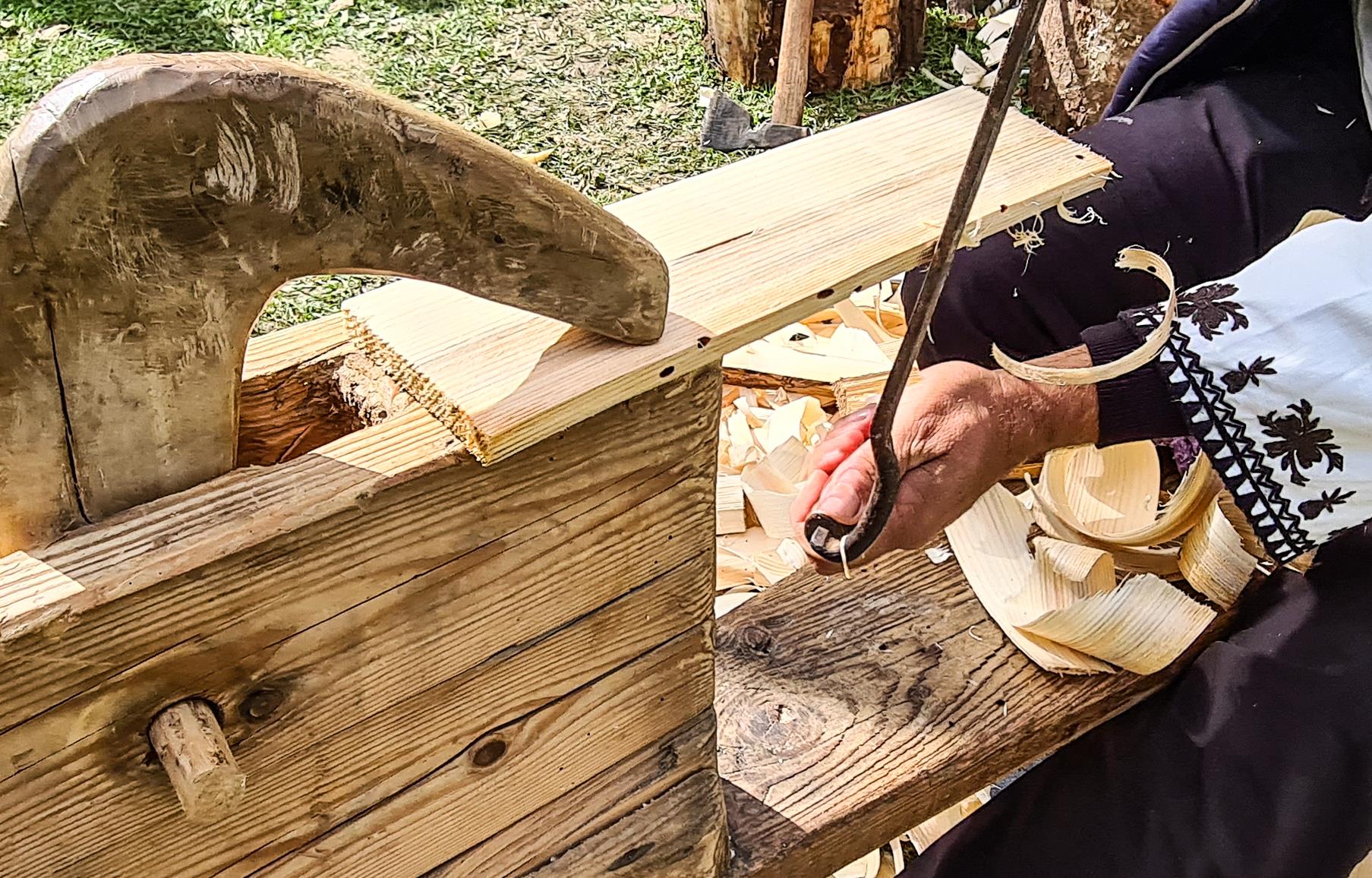 Alături de ei, alți meșteri pricepuți - tâmplari și dulgheri - vor da formă și utilitate lemnului demonstrând cum prinde viață fiind folosit în bucătăria de odinioară dar și în cea contemporană.