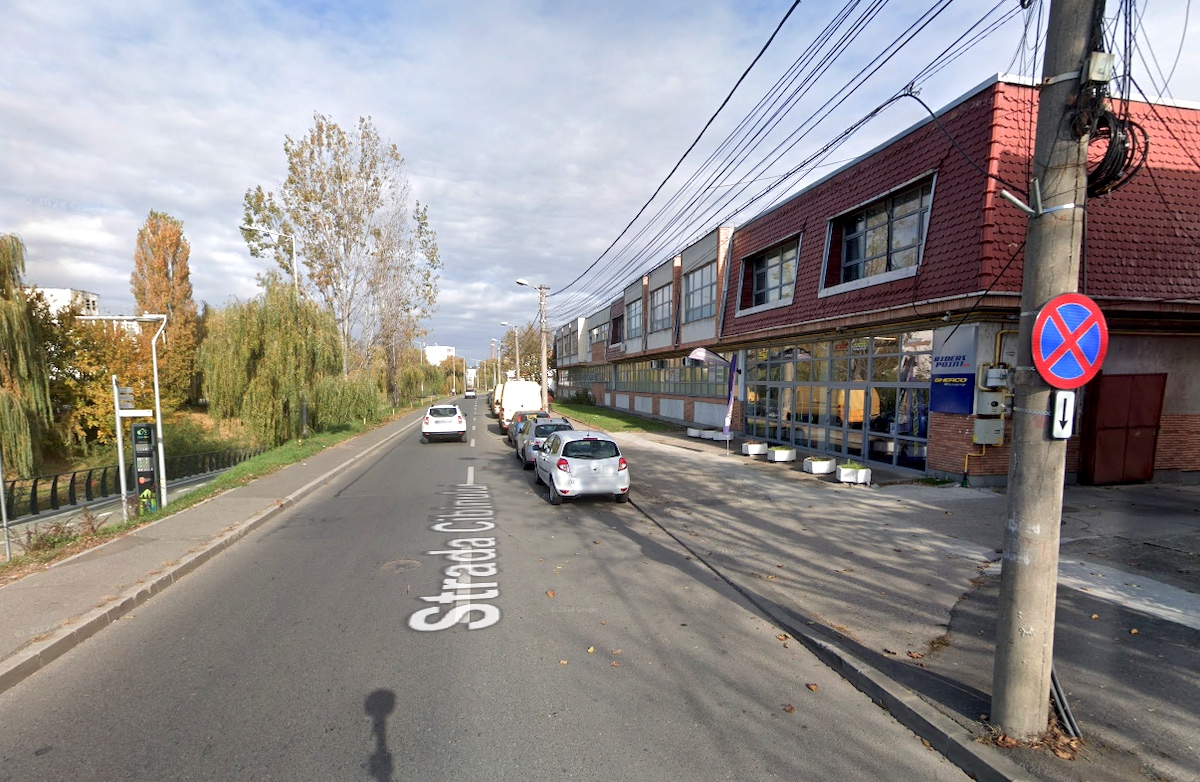 Primăria Sibiu anunță că nu va mai tolera parcarea mașinilor pe o bandă a străzii Cibinului și va institui ”Oprirea interzisă”. Doar că această interdicție există de mulți ani, fără a fi respectată de șoferii sibieni. Sursa foto: Google Street View