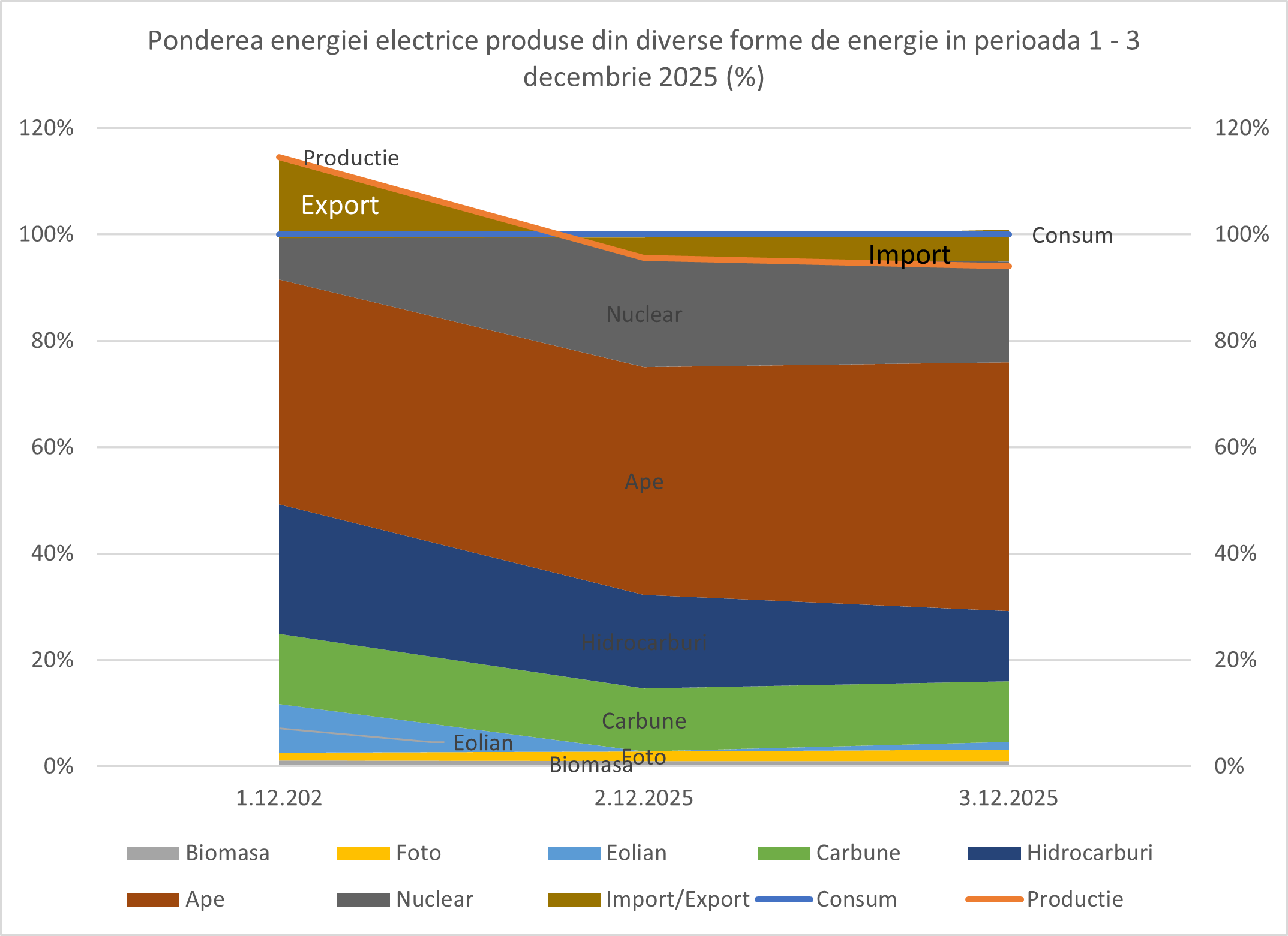 În ultimele 24 de ore Hidroenergia a salvat România de la colapsul sistemului energetic românesc, după incidentul de la Barajul Paltinu și oprirea Centralei Electrotermice de la Brazi, exact în momentul în care vântul și soarele au dispărut complet din balanța electroenergetică națională. Aceasta este realitatea care de la cele mai înalte funcții în stat este ignorată, în timp ce întârzie sau blochează finalizarea hidrocentralelor și repetă obsesiv că „mai bine, vom face parcuri fotovoltaice decât să finalizăm hidrocentralele”.