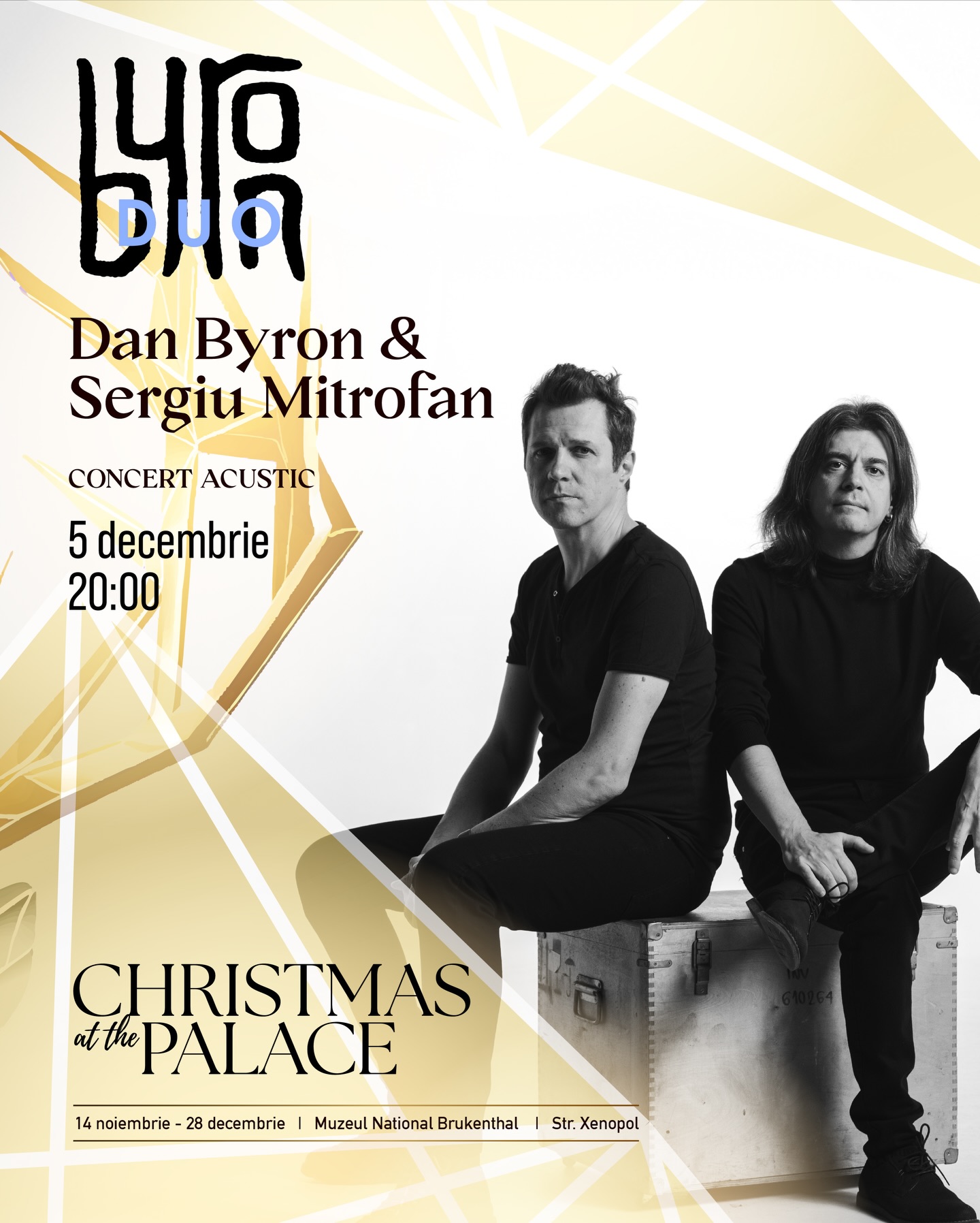 „Fiecare concert Byron DUO este o călătorie emoționantă și plină de surprize, iar vineri ai ocazia să o trăiești într-un decor festiv, în aerul fermecător al palatului,” arată sursa citată.