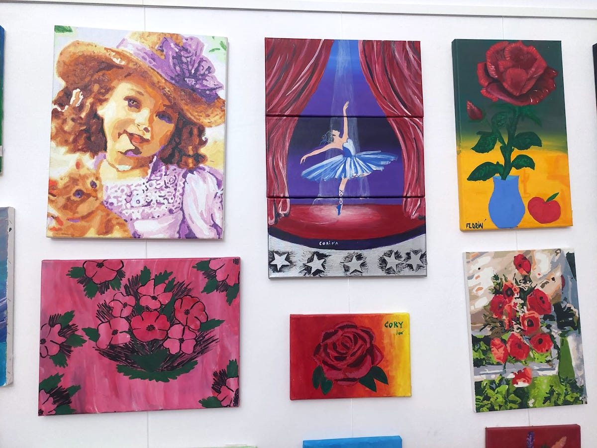 „Cele mai apreciate tablouri ale expoziției sunt făcute de pacienți care nu au un diagnostic ușor. De exemplu, cel mai râvnit tablou este al unei doamne care nu a mai pictat vreodată până să vină la atelierul de ergoterapie. Tablourile care înfățișează o balerină sunt făcute de o tânără care a fost abuzată de soț, iar tabloul care apare și pe afiș este făcut de Florin a cărui viață înseamnă spital”, povestea Iza până să fi ajuns creatorii din spatele poveștilor la Brukenthal.