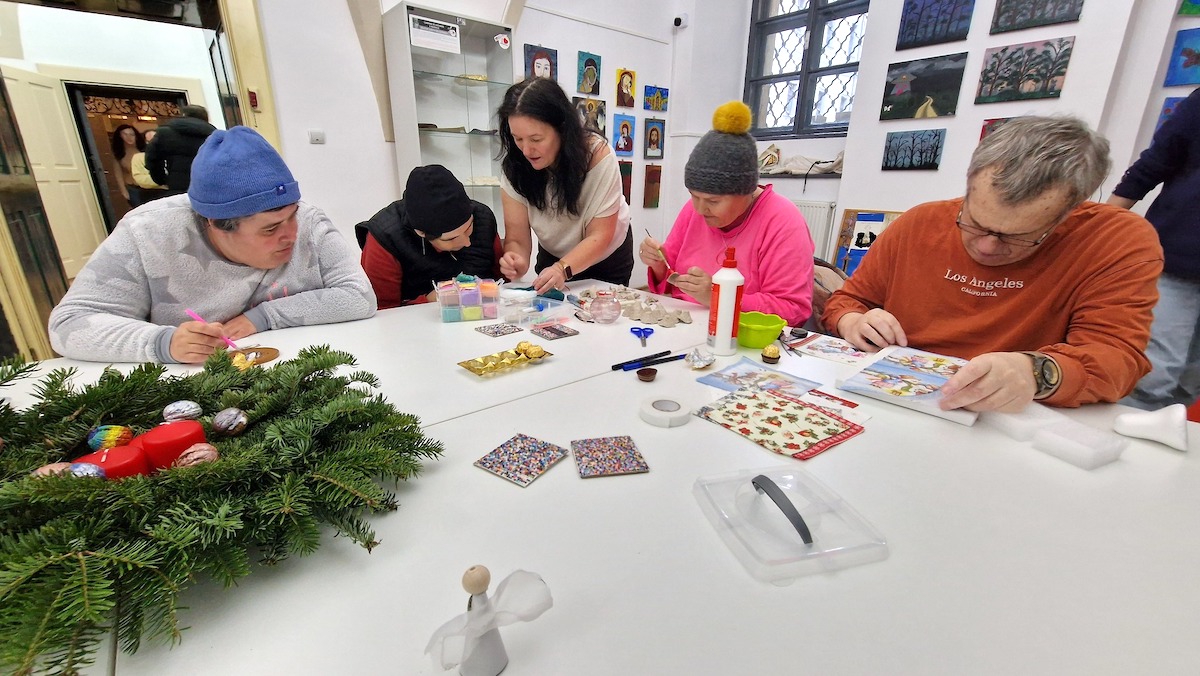 Atelierul face parte din seria de activități organizate în cadrul expoziției, care poate fi vizitată până marți, 16 decembrie. Atunci este programată și vânzarea caritabilă a lucrărilor realizate de pacienți.