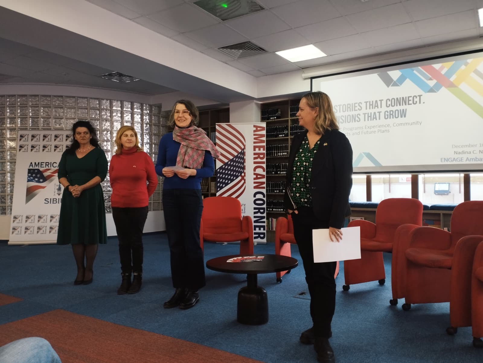 La Sibiu au fost prezenți însă absolvenți ai programelor de schimb guvernamentale americane, precum Fulbright, iar o profesoară din Drobeta Turnu Severin a prezentat programele și granturile la care pot aplica cadrele didactice din Sibiu, precum SUSI (Study of the U.S. Institutes) sau eTeacher din perspectiva experienței proprii.
