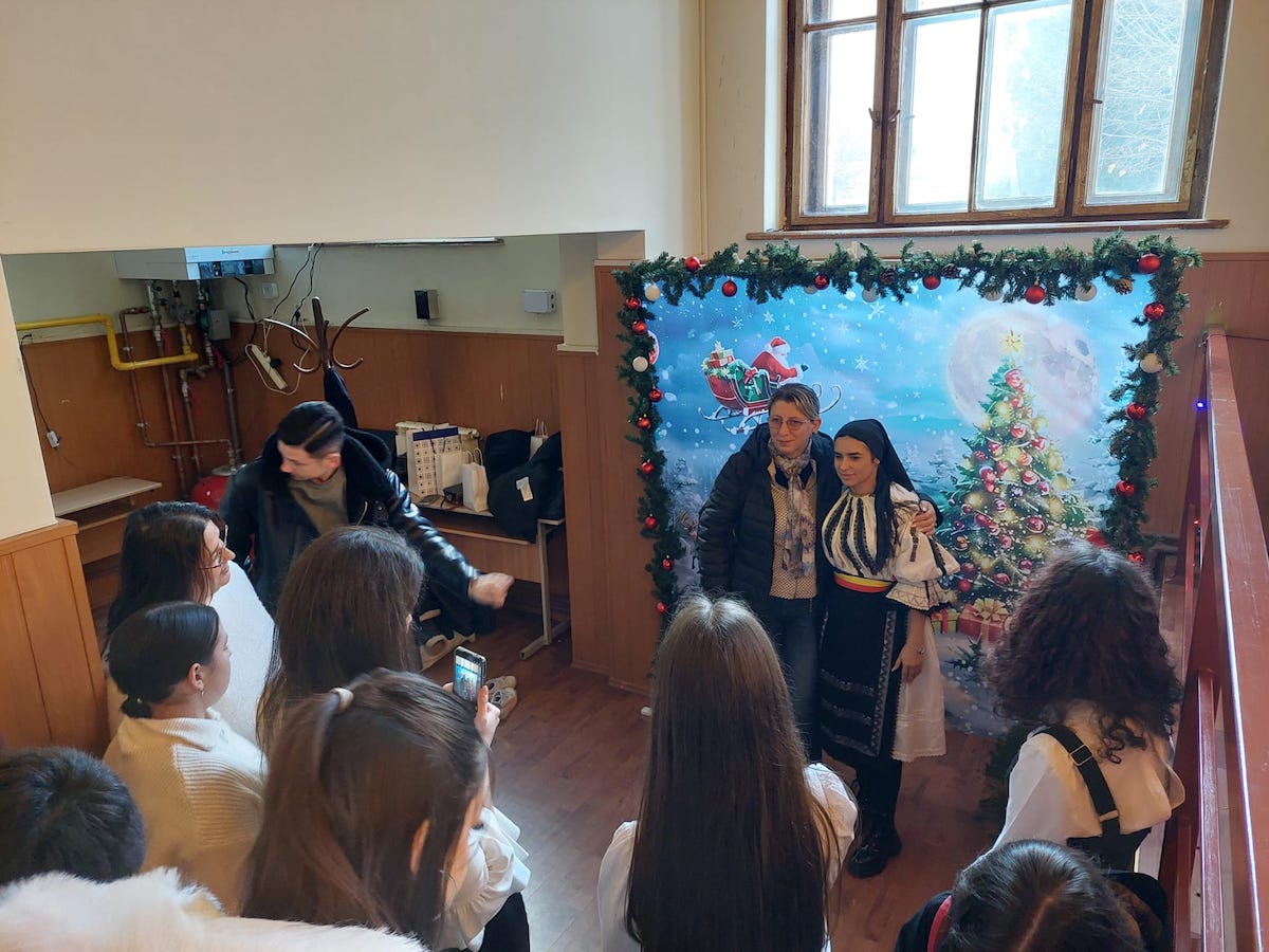O surpriză apreciată de participanți a venit din partea profesoarei de matematică Liana Dragomir, care a adus un panou cu specific de Crăciun, unde elevii și invitații s-au putut fotografia.