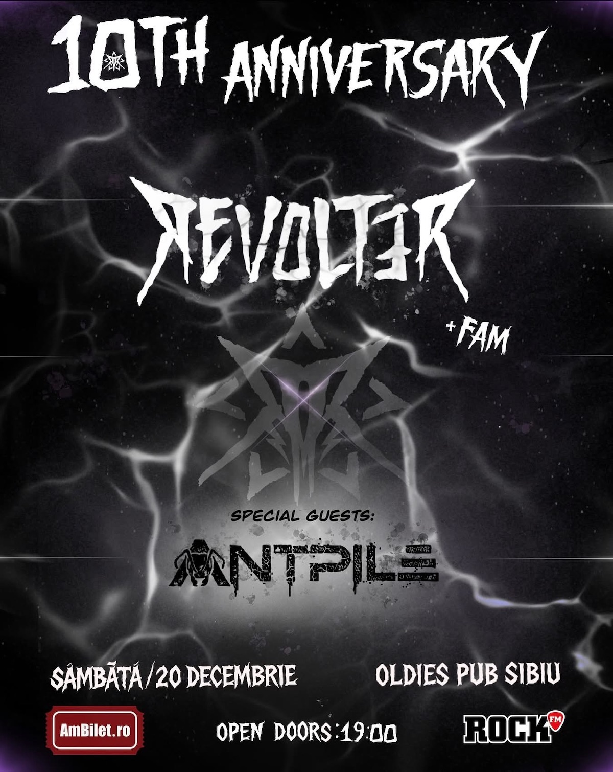 Revolter sărbătorește 10 ani de metal, pasiune și energie pură, printr-un concert care va avea loc sâmbătă, 20 decembrie, de la ora 19, la Oldies Pub.