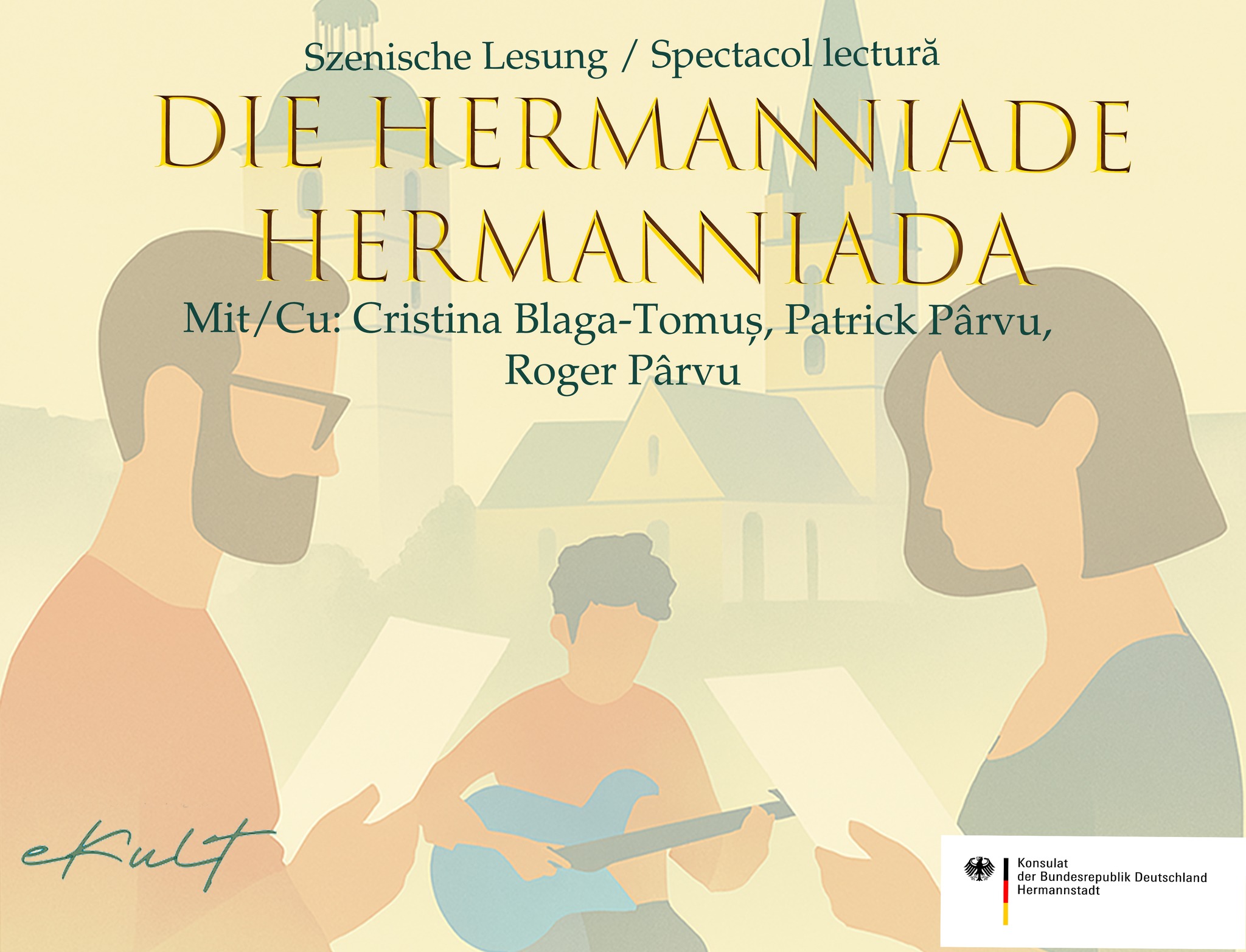 Asociația eKult ne invită la lectura scenică Hermanniada. Spectacolul va avea loc duminică, 21 decembrie, la Șura Culturală Gușterița din Sibiu (str. Mălinului, nr.4), la ora 18:00.