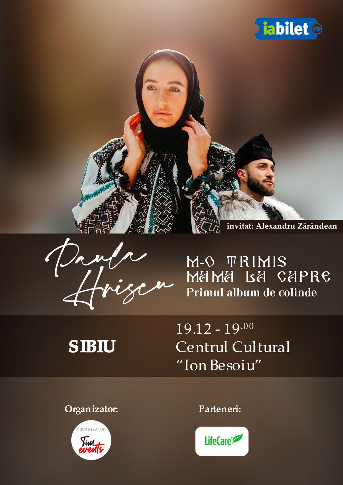 Paula Hriscu va delecta publicul din Sibiu la Centru Cultural Ion Besoiu în data de 19 decembrie, de la ora 19.00, în cadrul turneului “M-O TRIMIS MAMA LA CAPRE!” care promovează primul ei album de colinde. Detalii aici.