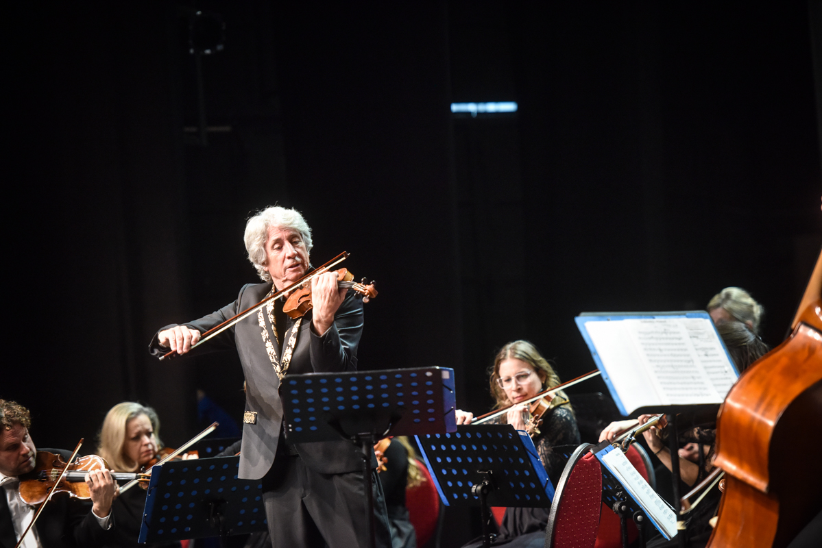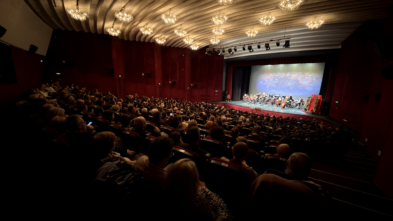 Peste 500 de sibieni au umplut sala de spectacole a Centrului cultural „Ion Besoiu”, în seara zilei de joi, 18 decembrie 2025, cu ocazia unui nou Concert de Crăciun susținut de orchestra condusă de carismaticul dirijor și prim-solist Russel McGregor.