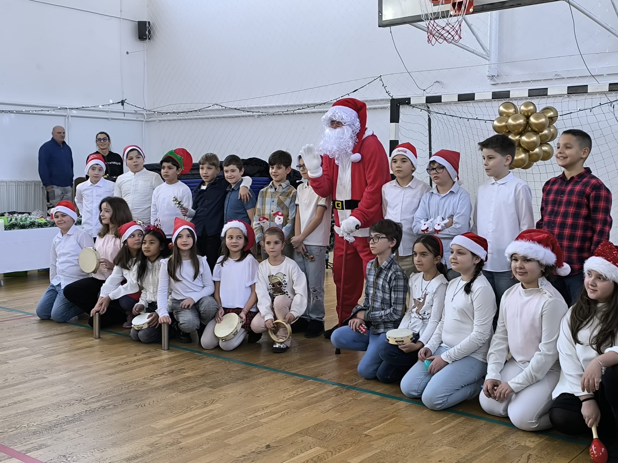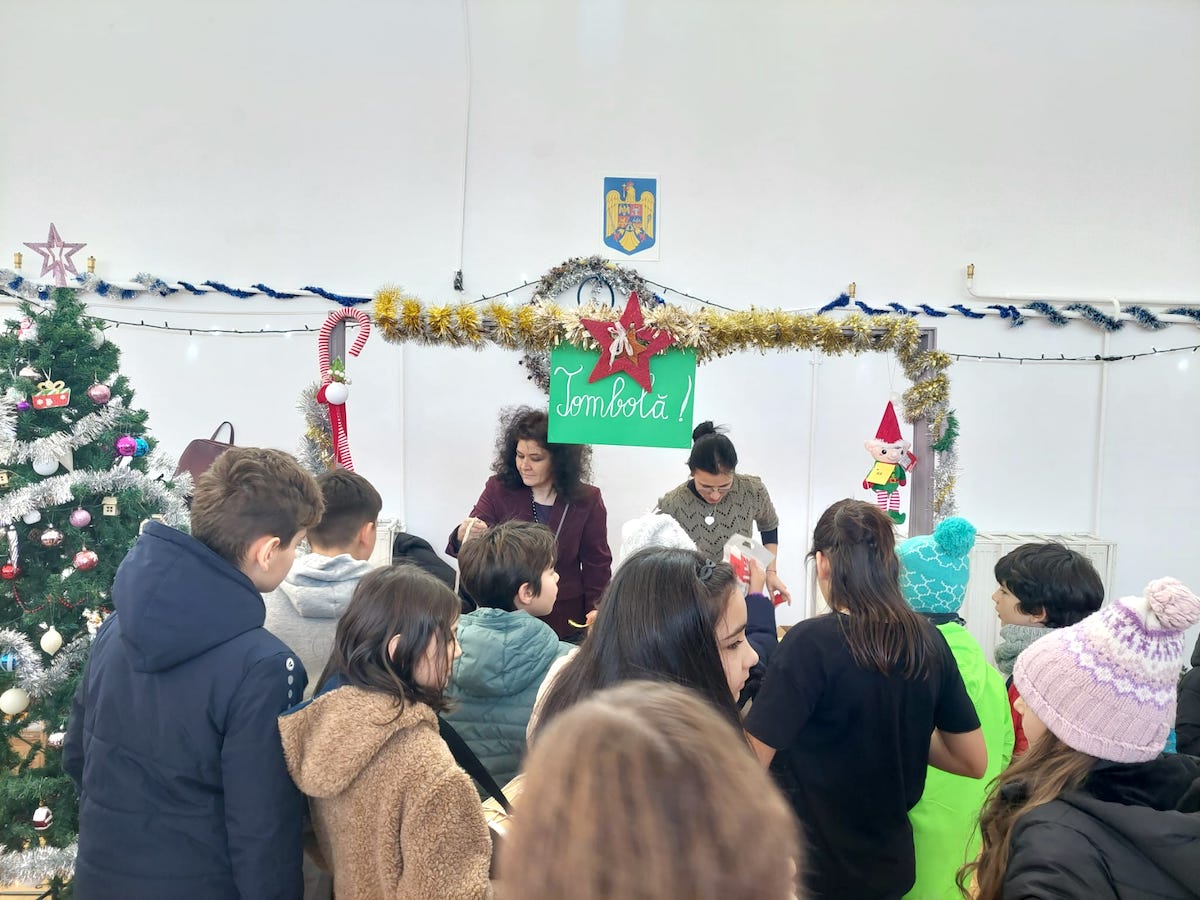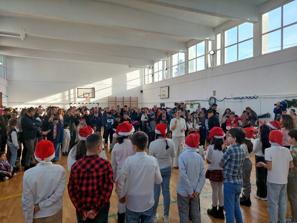 Atmosfera de sărbătoare a fost întregită de elevii clasei a III-a B, care i-au colindat pe participanți și de prezența lui Moș Crăciun.