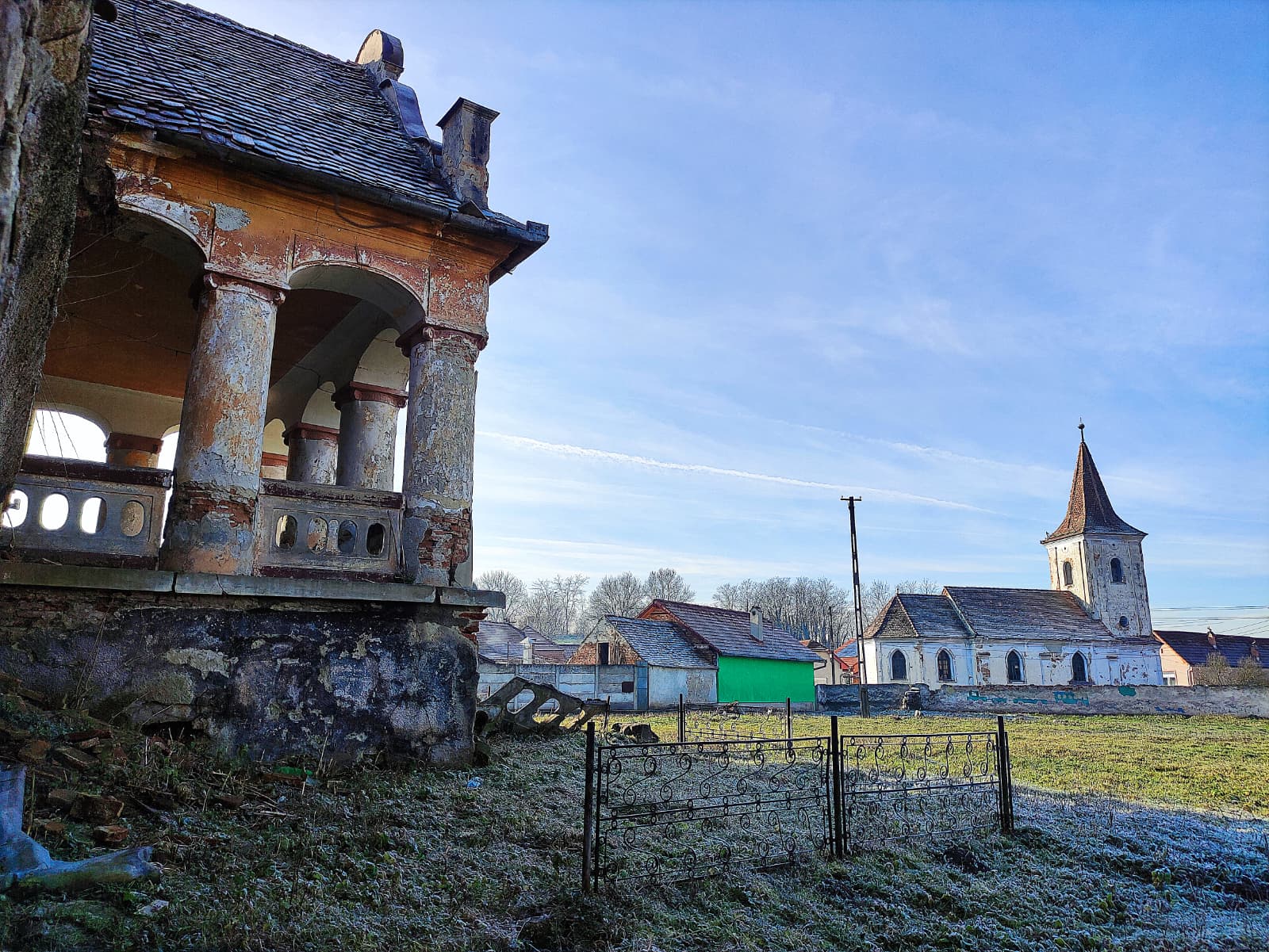 N-am fost pe aici niciodată, anunțul de vânzare din 2020 mi-a stârnit curiozitatea: atunci mă gândeam că dacă aș fi avut bani, l-aș fi cumpărat eu. Castelul, situat vizavi de biserica evanghelică din sat, e protejat de ochii curioșilor un gard înalt din piatră și poarta e închisă. După ce am ieșit din mașină am intrat în vorbă cu un localnic, care a dat a lehamite din mână când l-am întrebat despre castel. Zicea că în ultimii ani nu a mai fost nimeni pe aici și nici nu știe să fie vreo inițiativă de a-l aduce la viață. „Mai opresc unii oameni care vor să-l vadă; mai paște un om caprele pe teren. Era școală înainte aici, am învățat și eu, apoi grădiniță. După 90 și ceva s-a degradat. Intrați să vedeți dacă doriți”, îmi spune și scoate lacătul de la poartă care stă de formă.