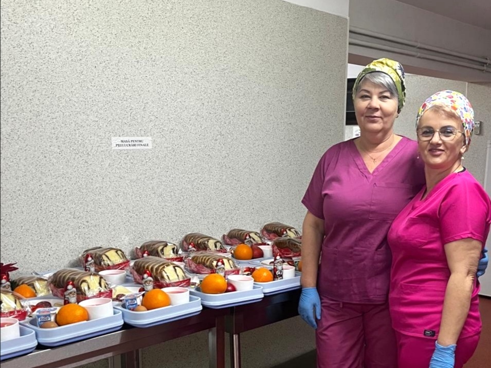 Pacienții internați în cadrul Spitalului de Pneumoftiziologie Sibiu au beneficiat, în ziua de Crăciun, de un meniu festiv, pregătit în blocul alimentar al unității sanitare. Masa specială a inclus sarmale, cozonac, portocale și figurine din ciocolată, oferite pacienților, în limita recomandărilor medicale.