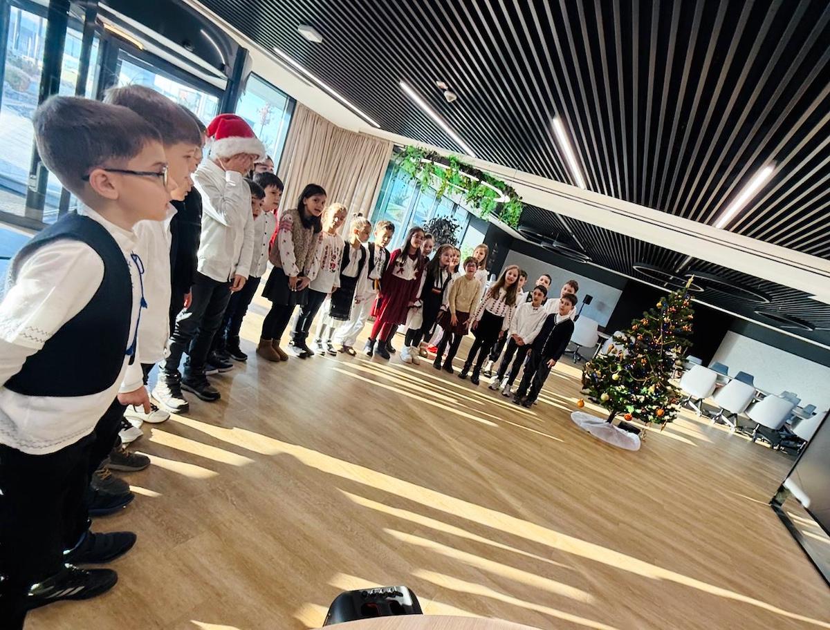 Sub îndrumarea învățătoarei Cristina Damaris Drașovean, copiii au participat la un turneu de colinde în mai multe instituții și spații publice din municipiul Sibiu.