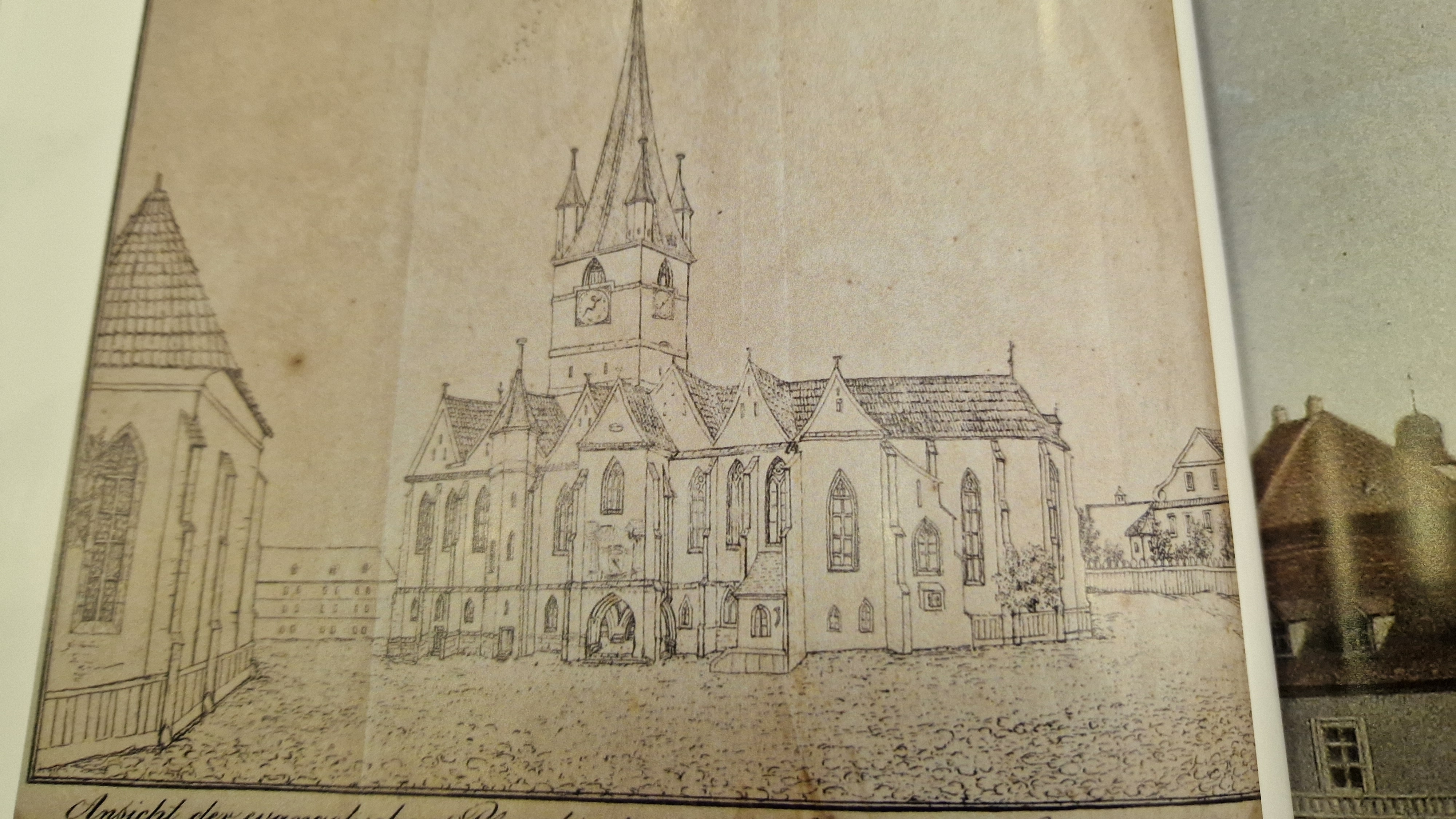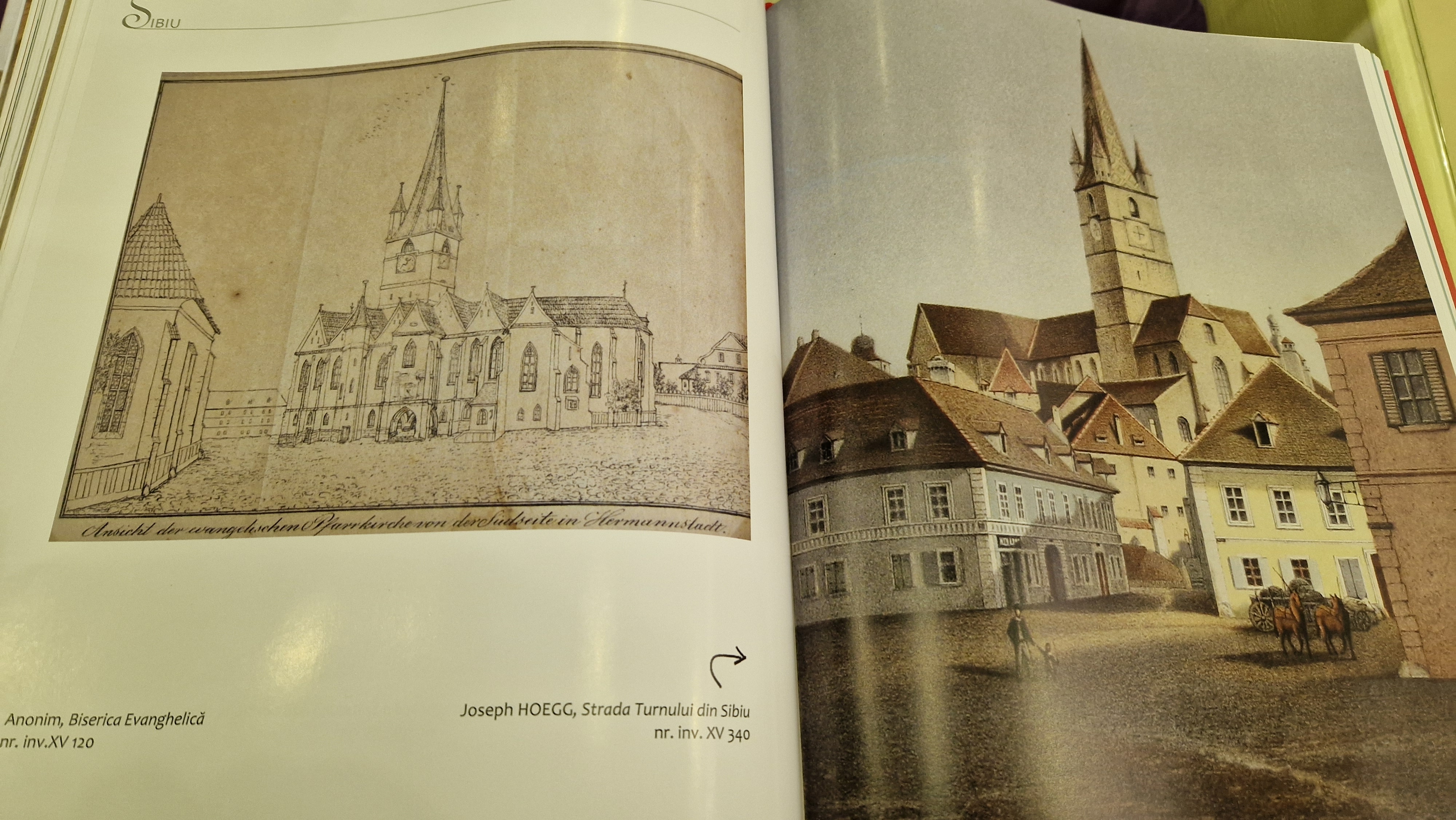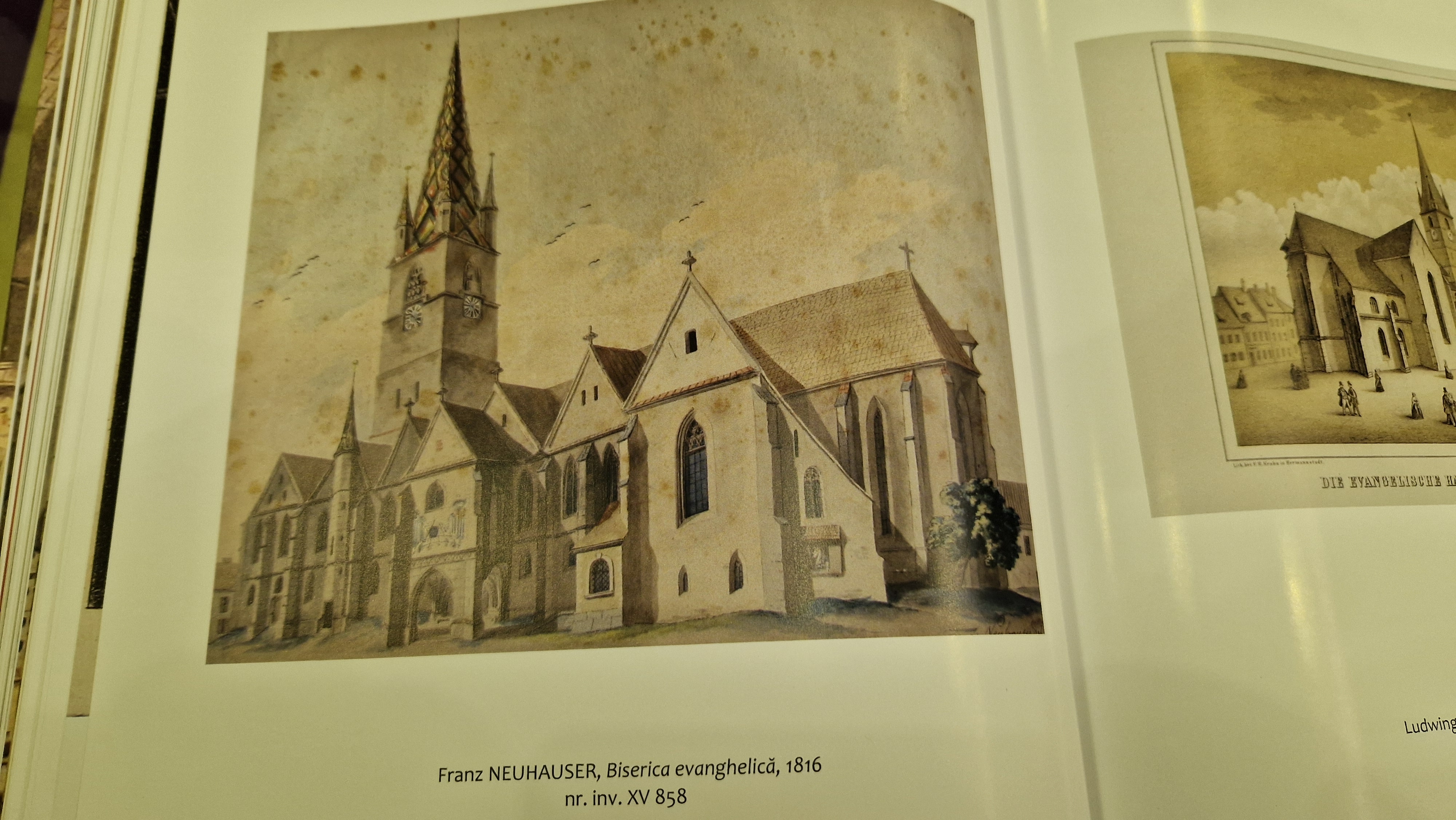 Printre creațiile descrise mai sus, una care iese în evidență este ”Biserica evanghelică, 1816” de Franz Neuhauser. Creația ilustrează emblematicul edificiu din Piața Huet, un simbol al Sibiului, care în urmă cu aproximativ 200 de ani avea chiar deasupra intrării principale un ceas solar de mari dimensiuni. Catedrala este vizitată anual de zeci de mii de turiști, fiind unul dintre punctele de atracție ale orașului nostru.