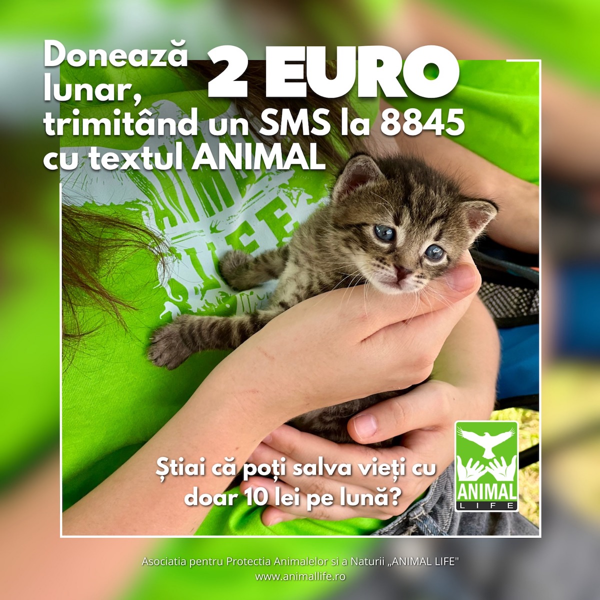 De asemenea, activitatea asociației poate fi susținută prin donarea a doi euro lunar prin SMS la 8845 cu textul ANIMAL.