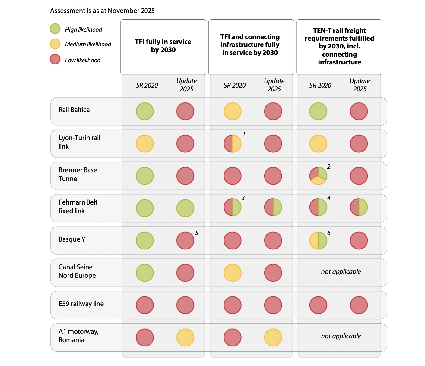 Concluzia raportului este că construcţia infrastructurilor de transport de maximă importanţă ale Europei a avut de suferit pe fondul crizelor neprevăzute, acumulând şi mai multe costuri şi întârzieri. Auditorii au trecut de la diagnosticul „este puţin probabil” la un clar „nu va fi atins” după ce au analizat şansele ca obiectivul stabilit pentru 2030 privind finalizarea reţelei transeuropene de transport (TEN-T) centrale să fie atins.