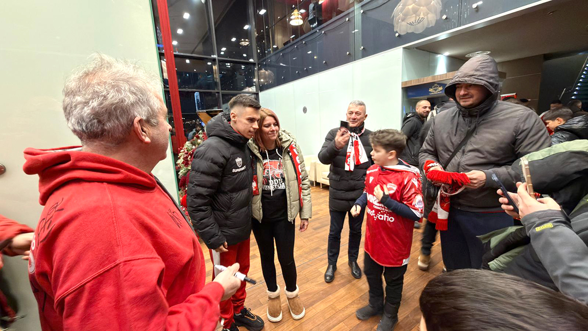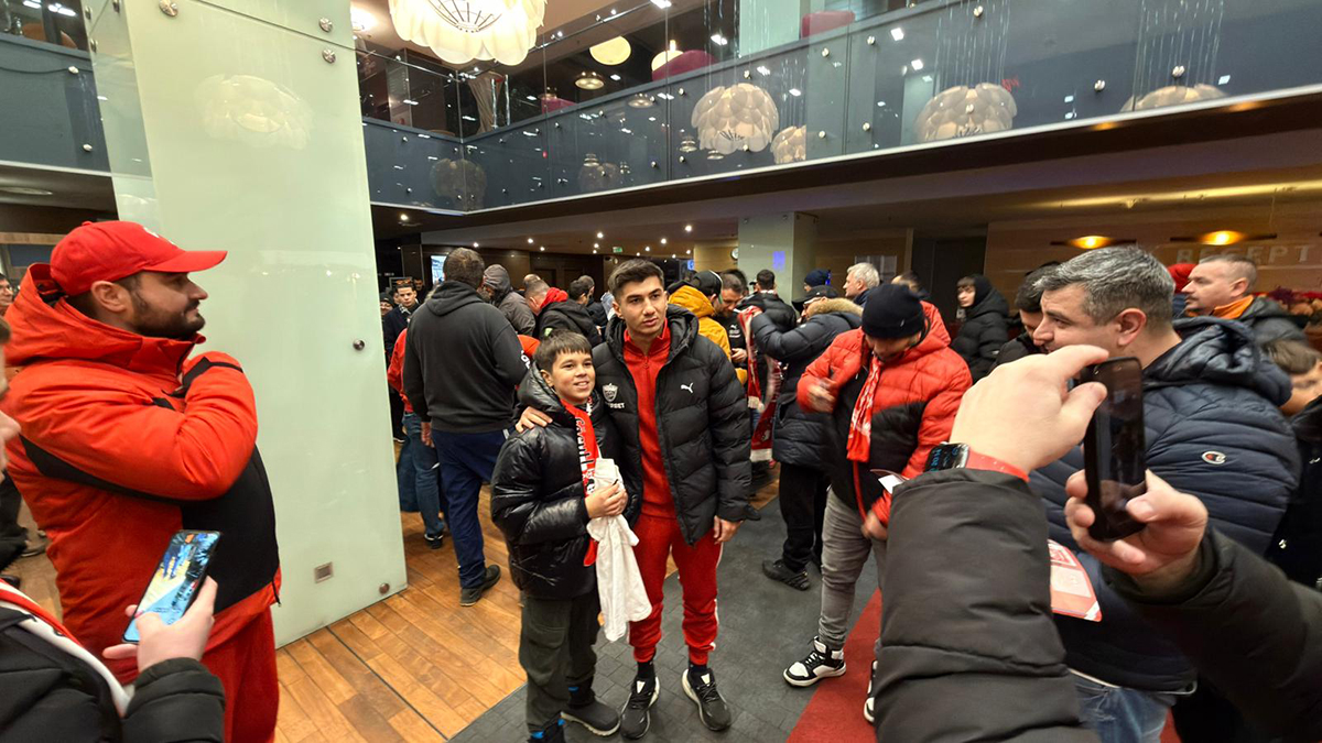 Zona din fața Hotelului Ramada, unde este cazată echipa oaspete, a fost neîncăpătoare joi seara pentru cei sosiți să se întâlnească cu jucătorii dinamoviști.