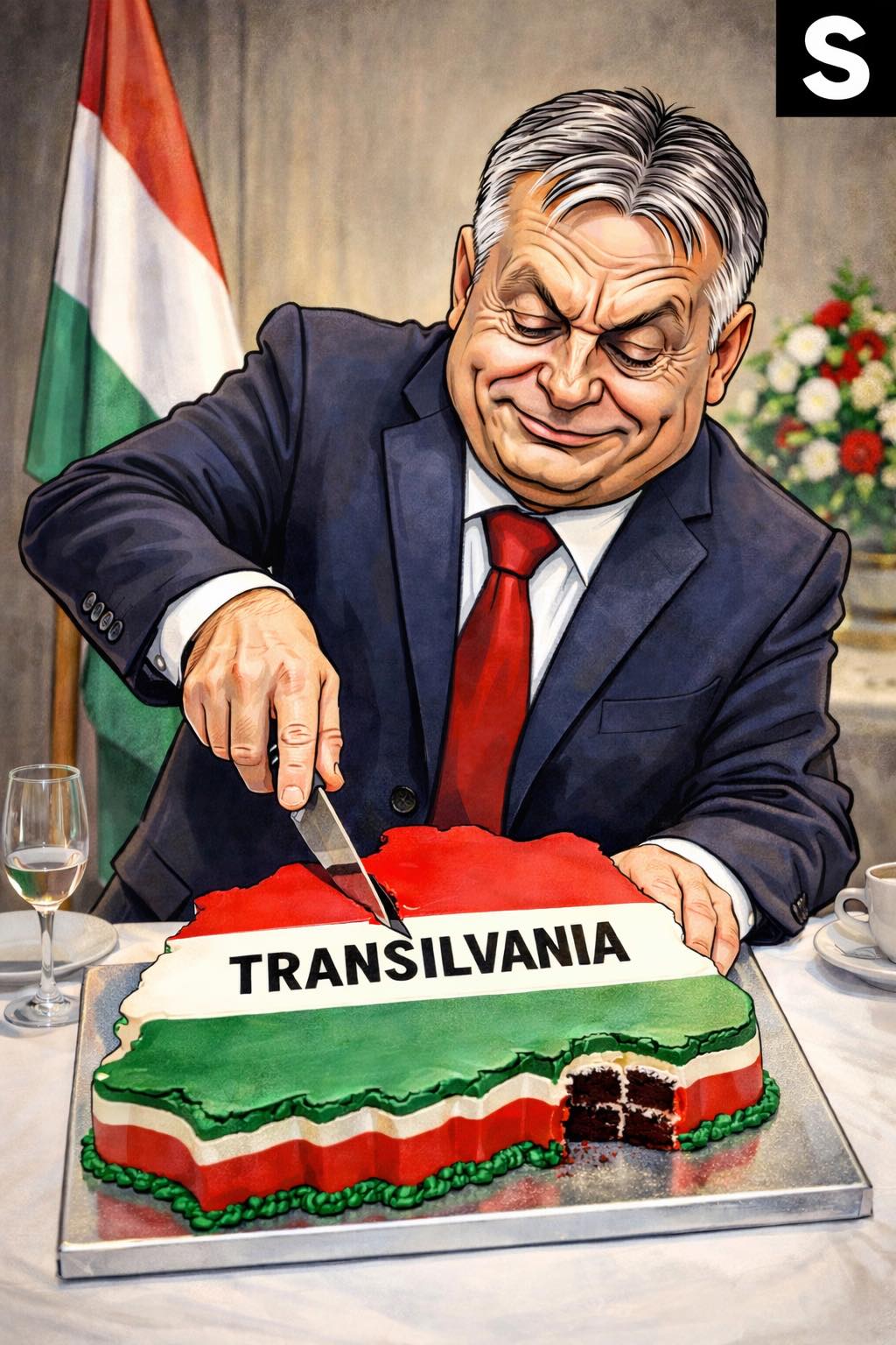 Nici fostul președinte AUR Sibiu, fostul deputat Sebastian Suciu, nu a lăsat netaxat gestul lui Simion. Pe pagina sa de Facebook, alături de imaginea cu George Simion aflat cu cuțitul în mână în fața tortului, fostul lider AUR a publicat o caricatură cu Viktor Orbán, premierul Ungariei, în timp ce taie un tort creat sub forma Transilvaniei, acoperit cu steagul maghiar. „Când tai torturi în forma altor state, arunci la coșul de gunoi orice idee a suveranității unei țări și nu mai e glumă sau PR, e «mesaj» politic și poate misiune externă! Imaginați-vă, oare care ar fi urmările și gândurile românilor într-un astfel de moment imortalizat? Deșteaptă-te române!”, a scris Suciu alături de cele două imagini.