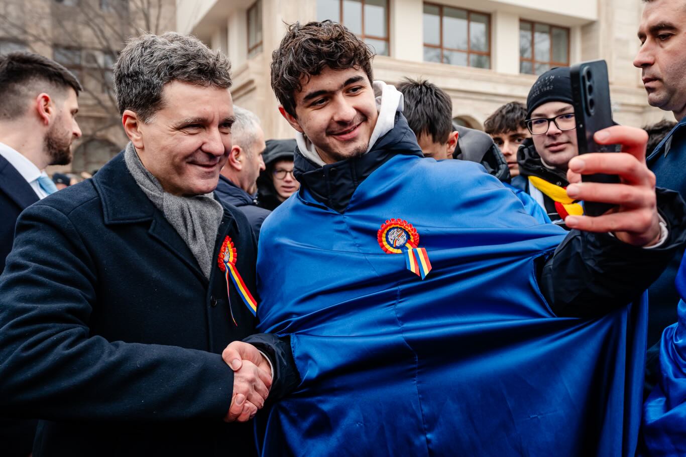 La finalul manifestărilor oficiale, Nicușor Dan s-a prins în Hora Unirii alături de elevi, oficialități și cetățeni, iar apoi a rămas în mijlocul participanților pentru a face fotografii cu doritorii.