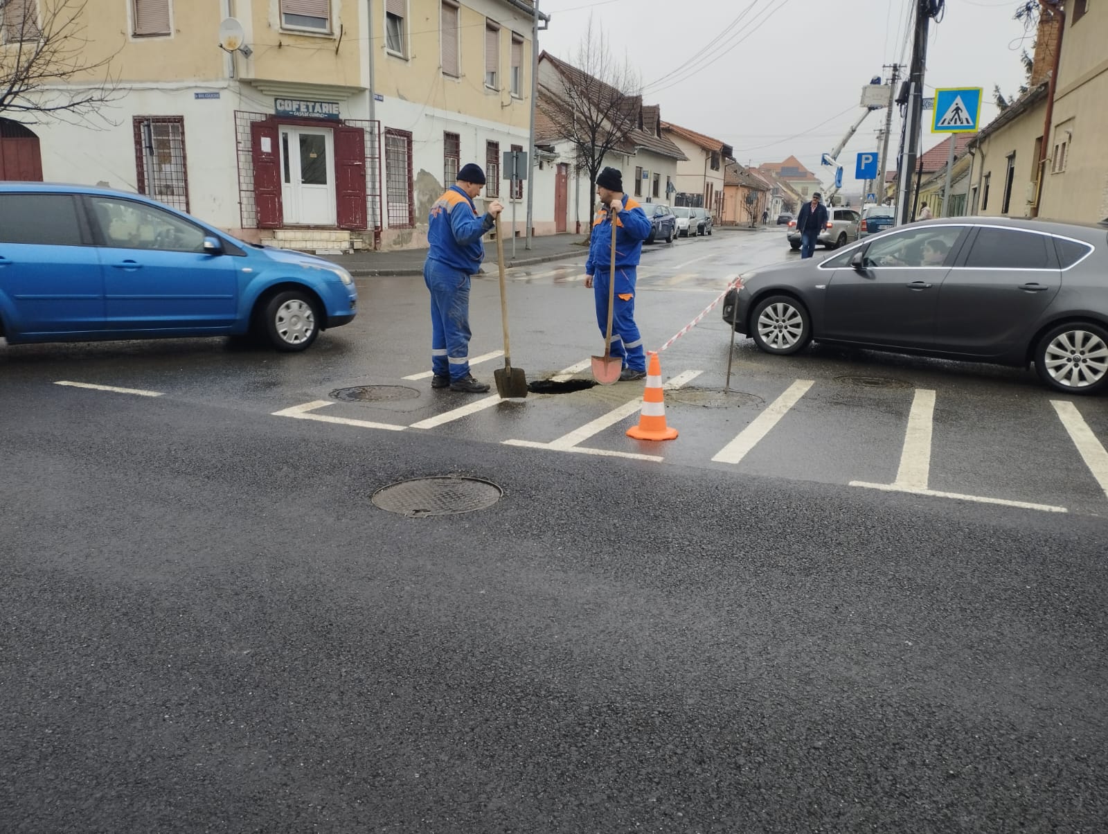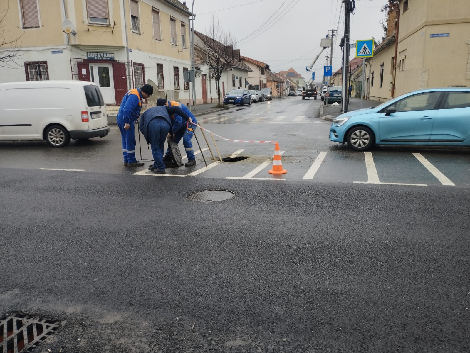 Despre defecțiune ne-a informat un cititor care a trecut marți dimineața prin zonă. La fața locului, am întâlnit trei muncitori de la Apă Canal Sibiu care izolau gaura cu un con, o bară metalică și o panglică alb-roșie. Gaura a apărut la intersecție cu strada Kiev, astfel că aceștia se aflau în postura de a dirija circulația.