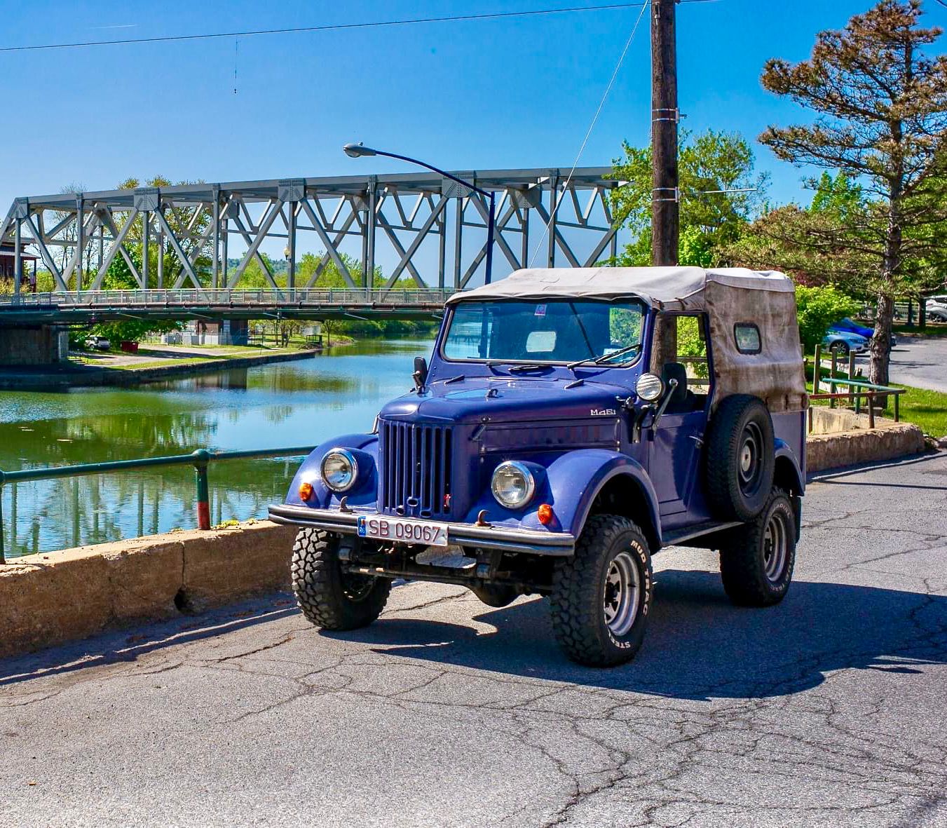 Fotografia unui ARO M461 cu numere de Sibiu în față și americane în spate într-un peisaj din Statele Unite. Mașina postată pe pagina de Facebook ”Wheels for Reels” ascunde în spate o istorie care acoperă aproape întreaga viață a unui om.