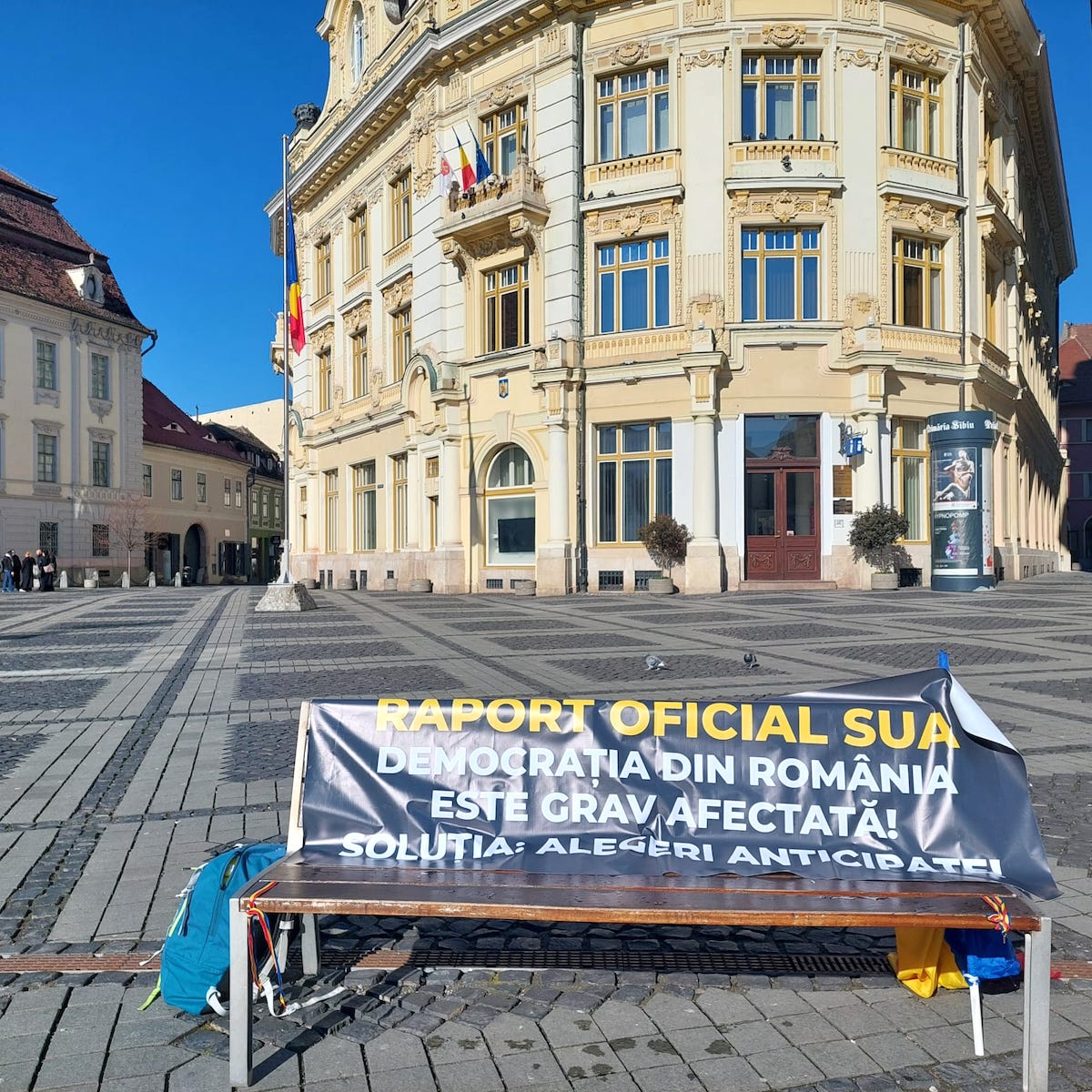 Comisia de avizare a adunărilor publice din Municipiul Sibiu a avizat favorabil cererea unei persoane fizice pentru organizarea unei acțiuni de protest în zilele de 26 și 27 februarie, între orele 10.00 și 19.00, în Piața Mare.