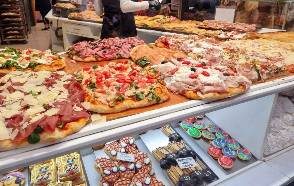 Dacă v-ați șocat de câte păsări se mănâncă aici, trebuie adăugat că italienii, mai ales cei din nord, au o preferință aparte pentru carne. Veți găsi aici magazine care vând, de exemplu, exclusiv carne și preparate din carne de cal. Iar în meniu veți găsi dese ori carne de măgar, capră ori ”pui de baltă”.