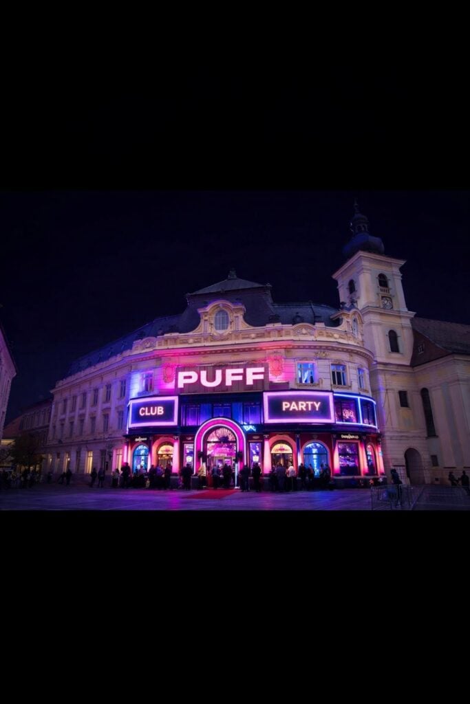 Un alt sibian, Ioan Cristian, i-a răspuns la comentarii tot cu o imagine generată cu inteligența artificială, în care sediul Primăriei Sibiu este transformat într-un club.