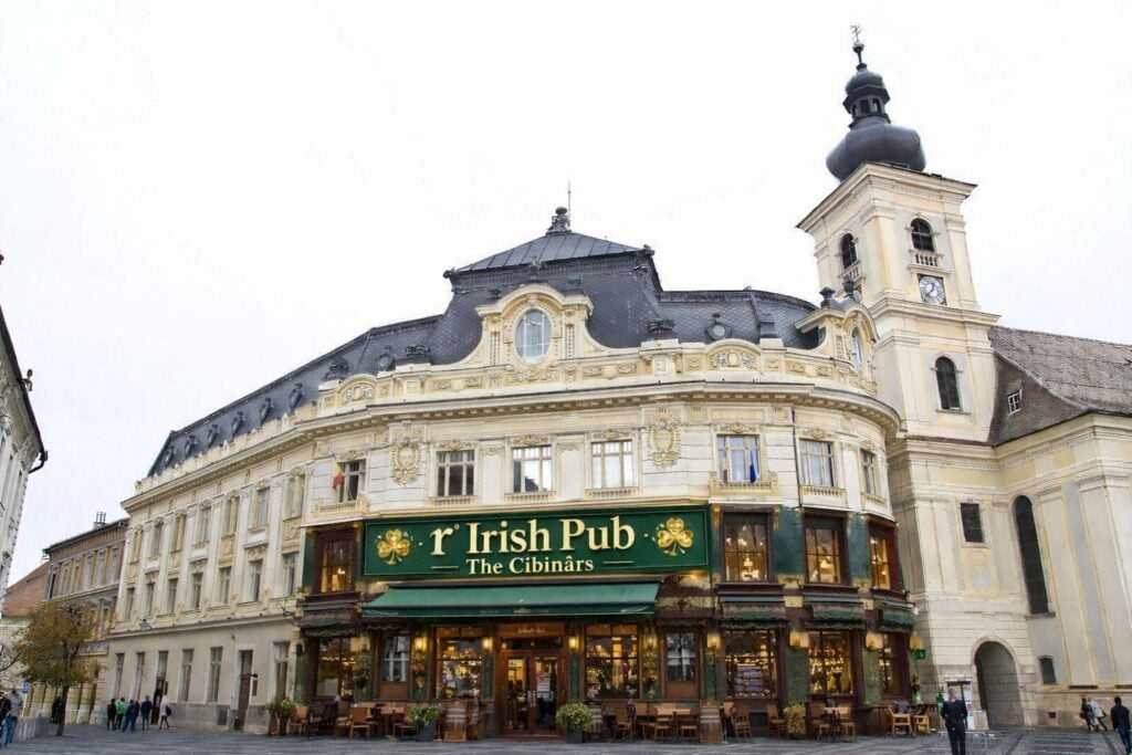 La postarea lui Paul Albu a răspuns și Silviu Scrob cu o imagine în care sediul Primăriei Sibiu este transformat într-un pub.
