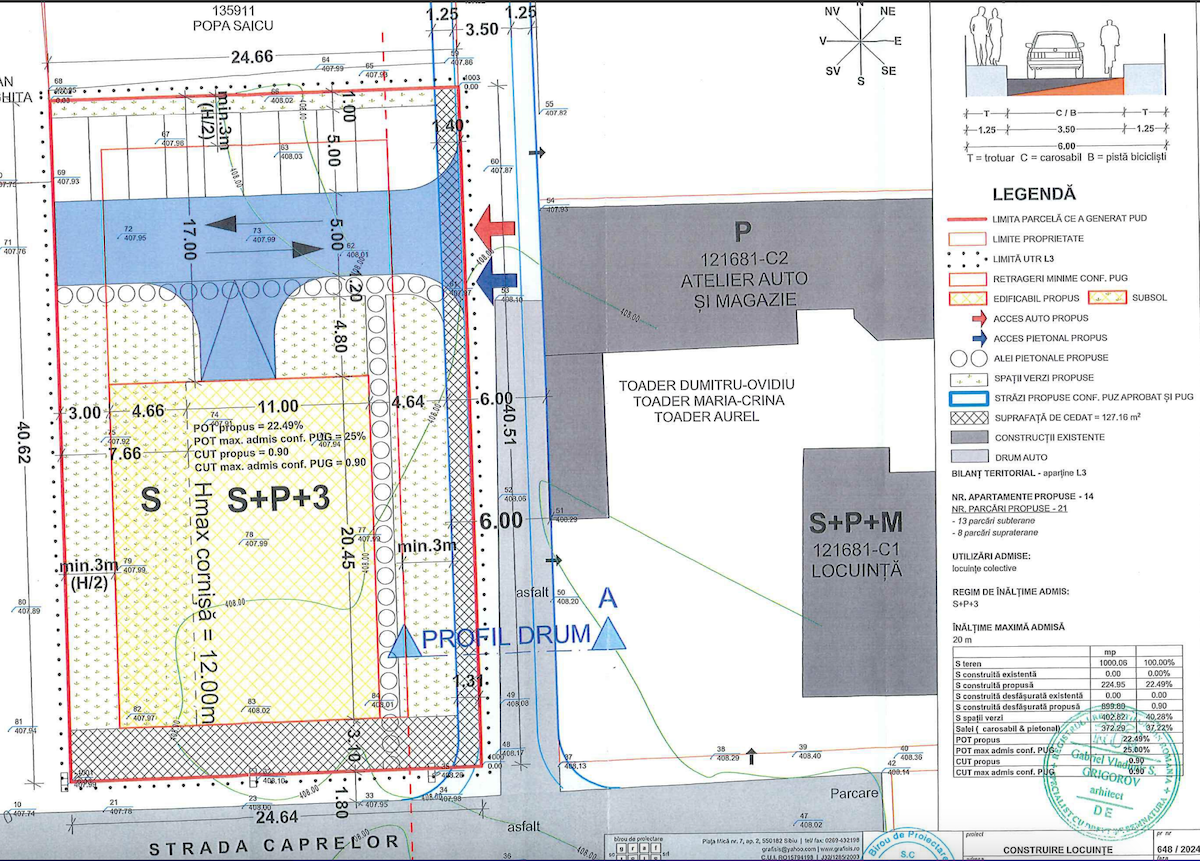 Aprobarea Planului Urbanistic de Detaliu (PUD) pentru „Construire locuințe, în municipiul Sibiu, str. Caprelor f.n.” este denumire proiectului inclus pe ordinea de zi. PUD-ul a fost inițiat de de societatea G&G House Invest SRL și vizează un teren cu o suprafață totală de 1.000 mp.