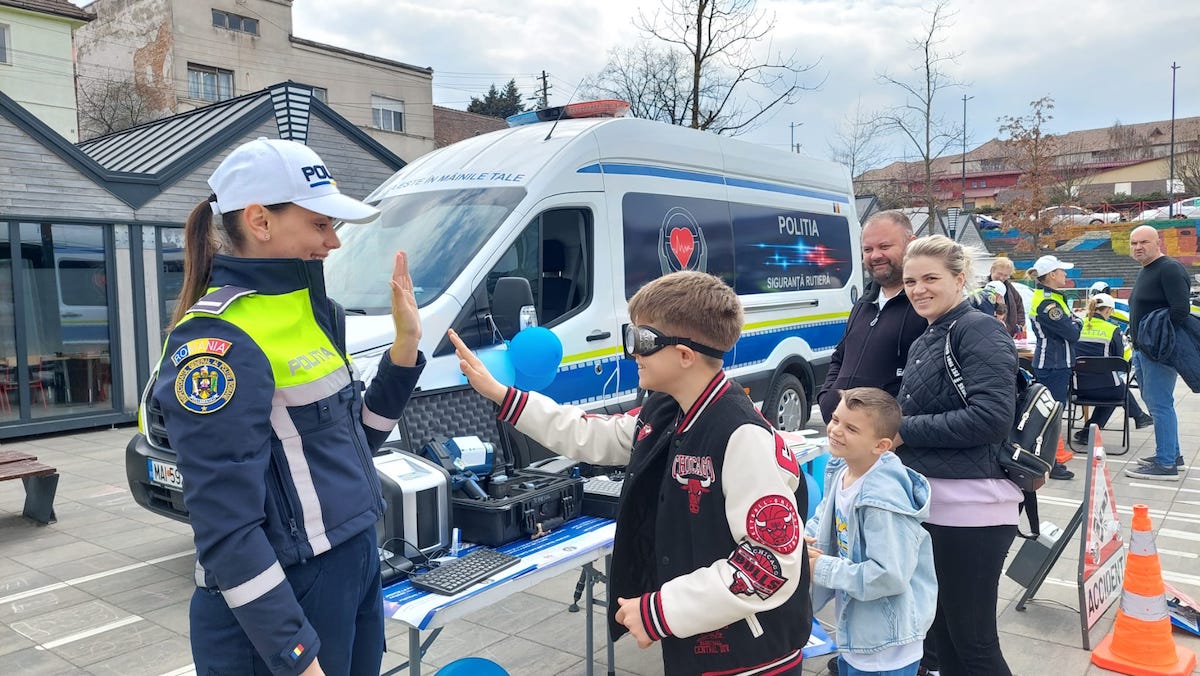 Copiii au fost fascinați de echipamentele expuse, de la armament, aparatele de verificare a alcoolemiei și radarul pentru viteză, până la simulatoarele care arată efectele consumului de alcool și noile mașini ale polițiștilor.
