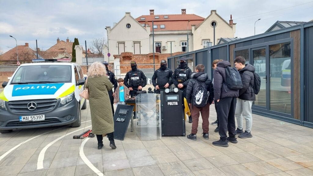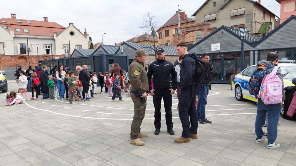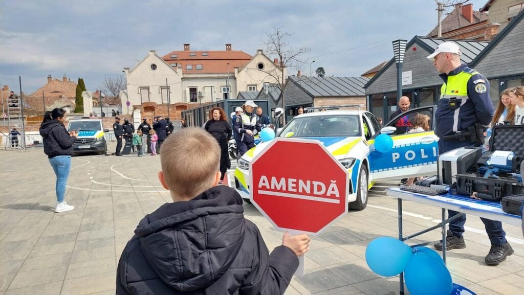 Piața Habermann din Sibiu a vibrat astăzi de curiozitate și energie, în cadrul evenimentului de sărbătorire a 204 ani de la atestarea Poliției Sibiu. Majoritatea vizitatorilor au fost copii fascinați de mașinile de poliție, echipamentele moderne, demonstrațiile cu câini și laboratoarele interactive. Au atins aparatură, au desenat, s-au urcat în mașini, au întrebat, și au expirimentat regulile de siguranță și munca oamenilor legii într-un mod distractiv.