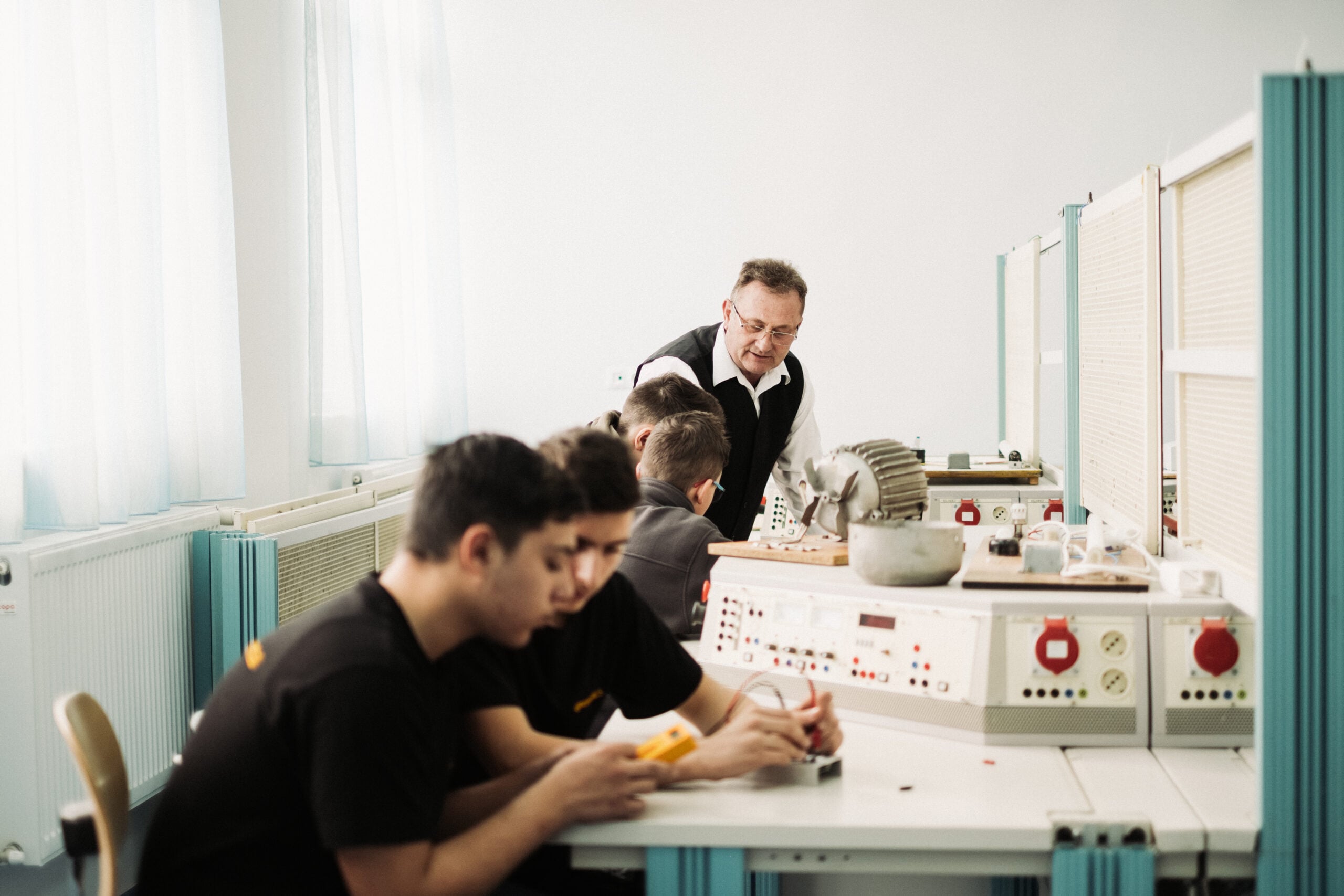 De fapt, laboratoarele sunt punctul central al întregului proiect. Ele acoperă domenii precum mecatronică, robotică, sisteme de producție digitale, automatizări industriale, ingineria materialelor și electronică etc. Dotarea lor urmărește un principiu rar aplicat în învățământul românesc: echipamentele din laborator să fie similare cu cele din fabrică.