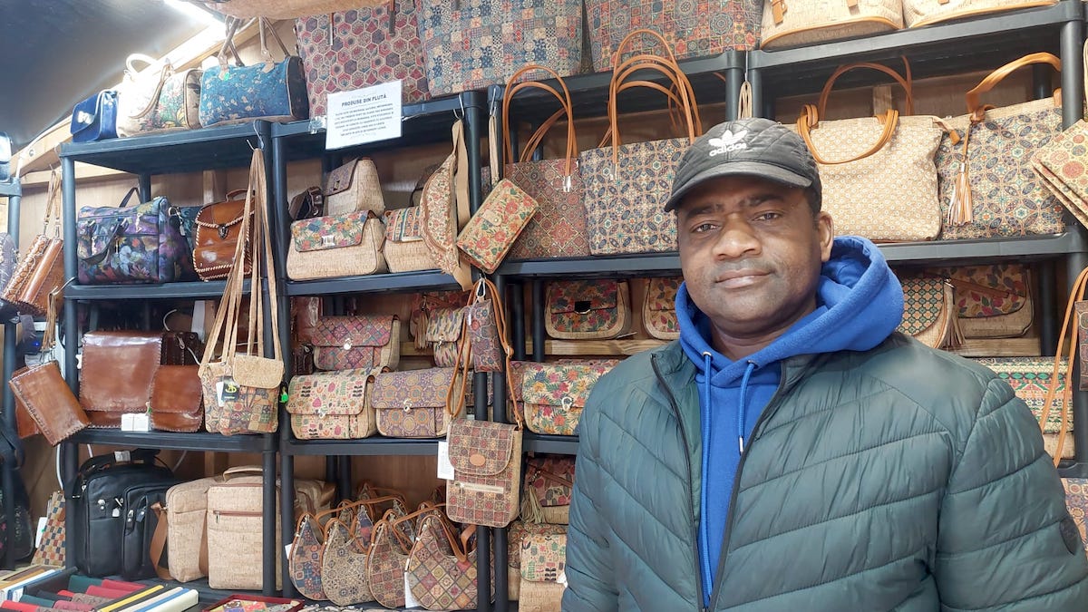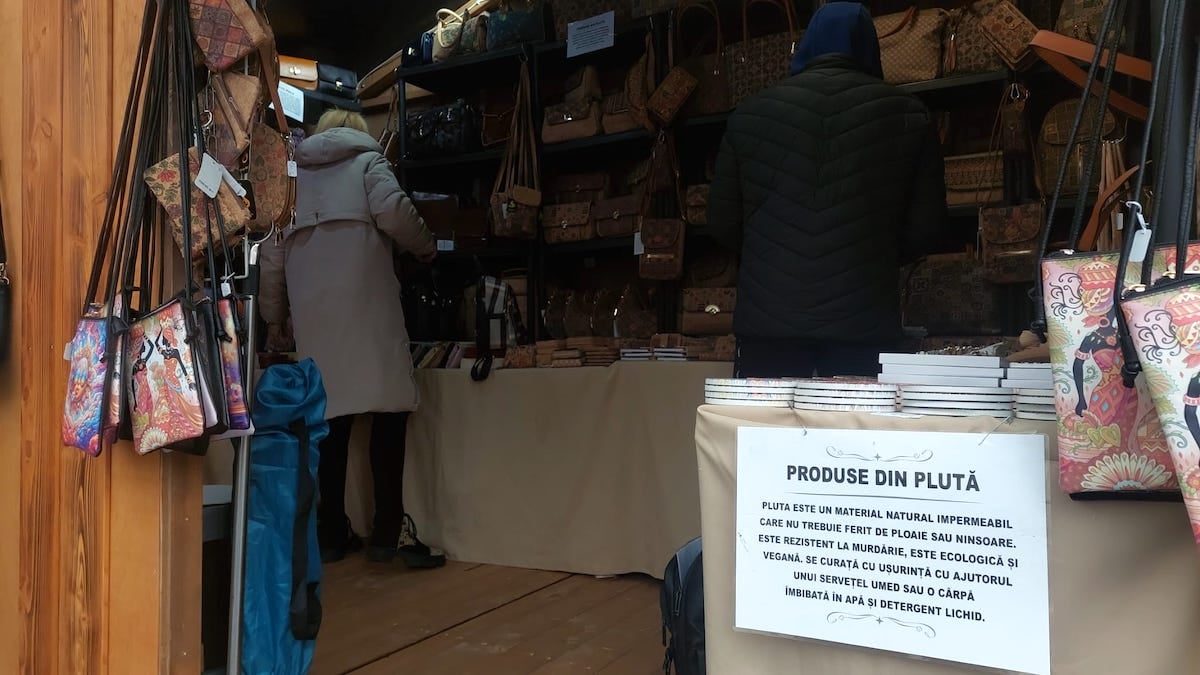 D-l Lema este și el pentru prima dată la Târgul de Paști. A mai fost doar în iarnă, de Crăciun. Produsele lui sunt fabricate din plută, după o metodă din Portugalia. La căsuța lui găsești genți, portofele, borsete, rucsacuri, suport pe care să pui paharul, brățări, inele, toate din plută. Prețurile pornesc de la 20 de lei și până la 140 de lei, cele mai mari genți.