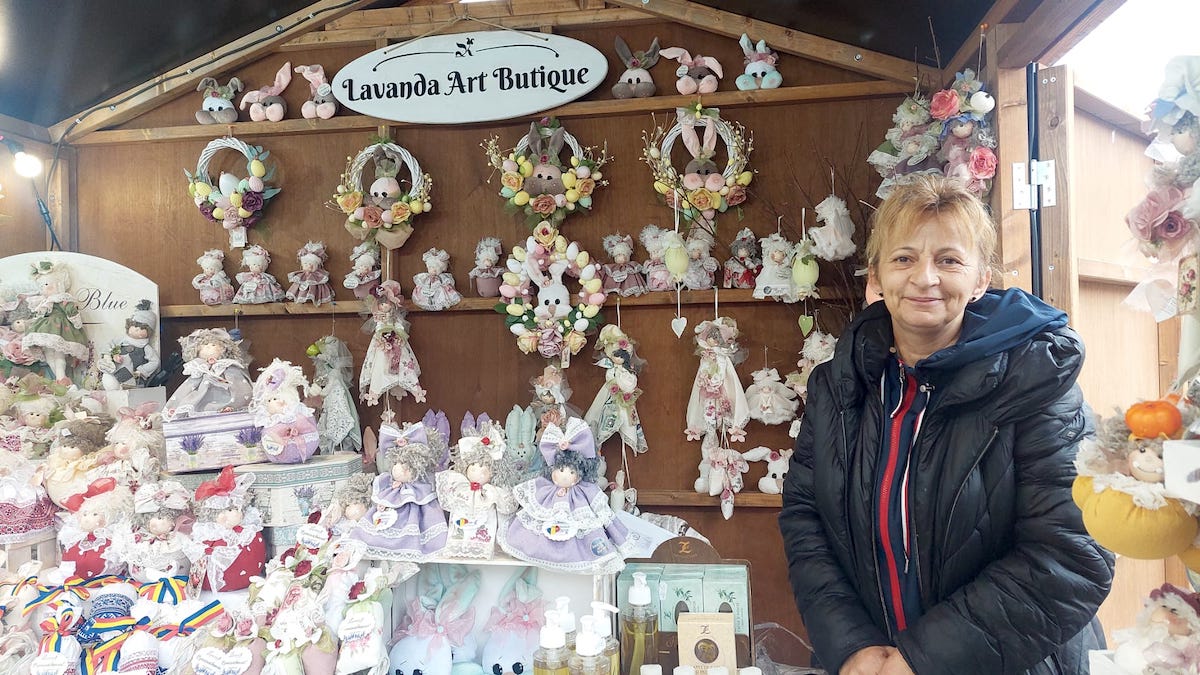 Nu departe de el este Gabriela Culda și căsuța ei dedicată lavandei. Este din Cluj și de 10 ani nu ratează niciun târg din Sibiu, fie că e cel de Crăciun, de Paști sau medieval. Acasă are propriul câmp de lavandă din care face toate produsele. Lavanda Butik este căsuța ei și are produse de la 5 lei și până la 130 cea mai mare păpușă de lavandă. Spune că nu a mărit prețurile, multe dintre ele fiind la fel chiar de când a deschis.