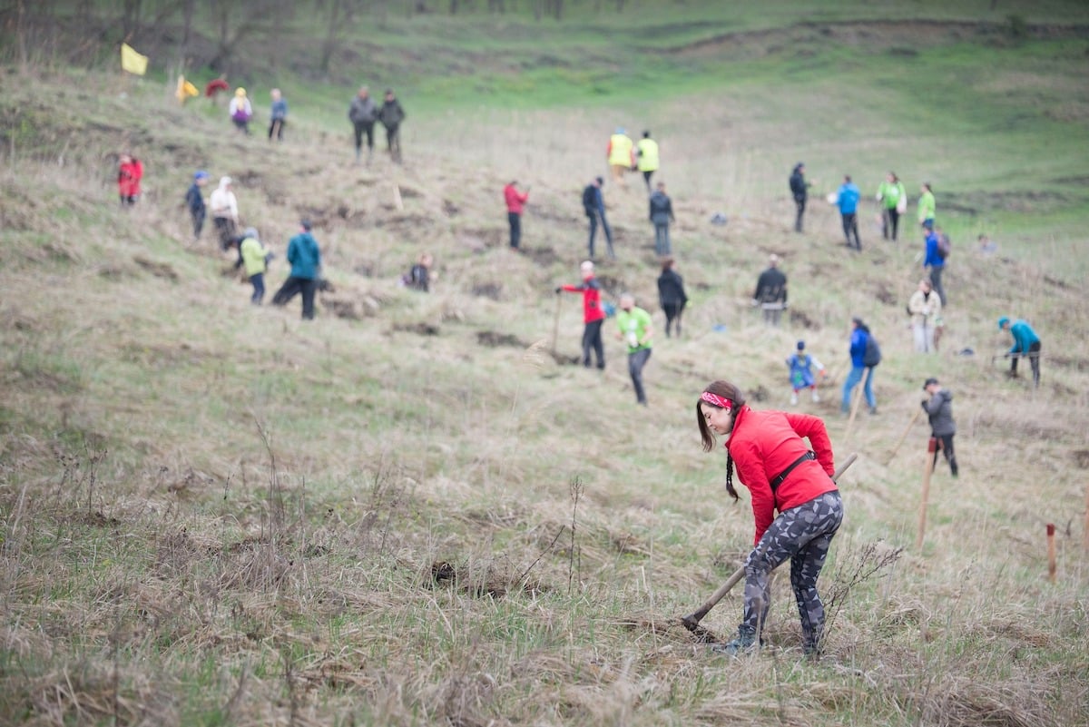 „Sâmbătă, 4 aprilie, în ciuda unei prognoze meteo nefavorabile, aproximativ 150 de voluntari au venit la Copșa Mică pentru a transforma o veche alunecare de teren afectată ulterior grav de poluare, într-o viitoare pădure de vișin turcesc și salcâm.