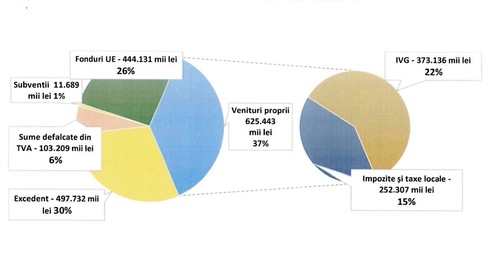 Din veniturile totale estimate pentru anul în curs la 1,682 de miliarde de lei (față de 1,473 de miliarde la început de 2025), cea mai mare pondere (37%) o constituie cea a veniturilor proprii, prognozate a depăși 625 de milioane de lei. Aceste surse proprii sunt constituite din impozitul pe venitul global (peste 373 de milioane de lei) și din impozitele și taxele locale (estimate a depăși 252 de milioane de lei în acest an).