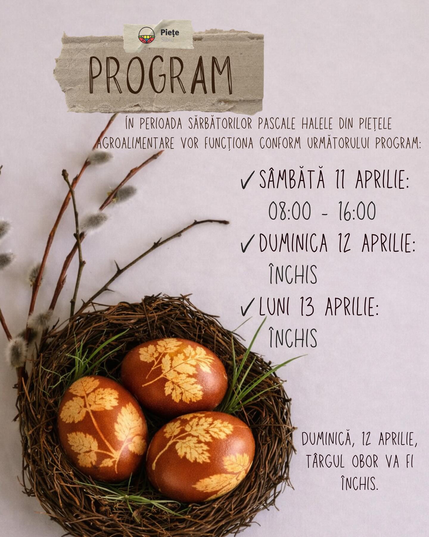 Magazinele, piețele și mall-urile din Sibiu vor avea program special de funcționare în preajma sărbătorilor de Paști.